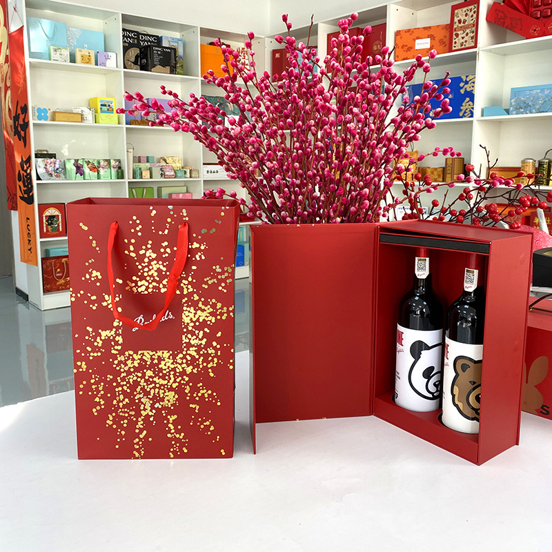 Вино подарочная коробка две 2024 новые двойные бронзовые штамповки креативная модная упаковка вина подарочная коробка пустая коробка