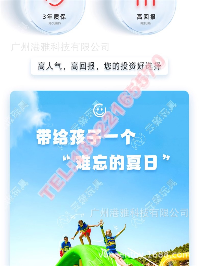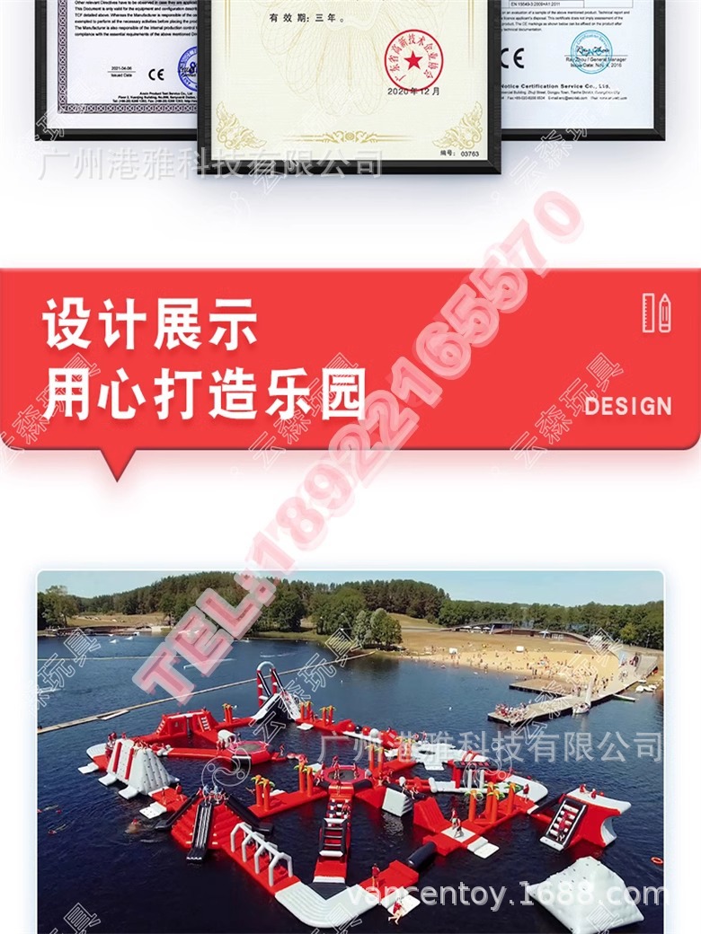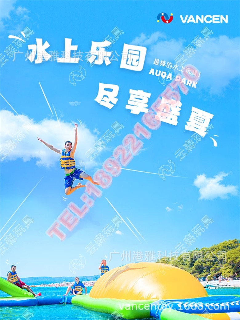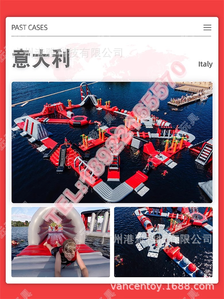 Большой надувной водный парк аттракционов «Морской рай», детская водная полоса препятствий.
