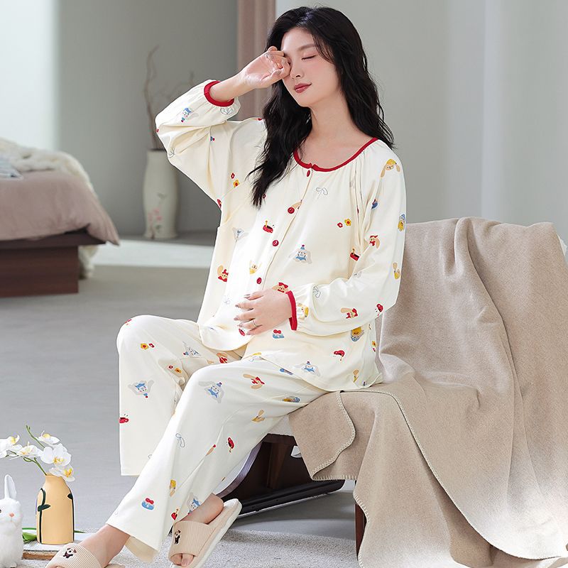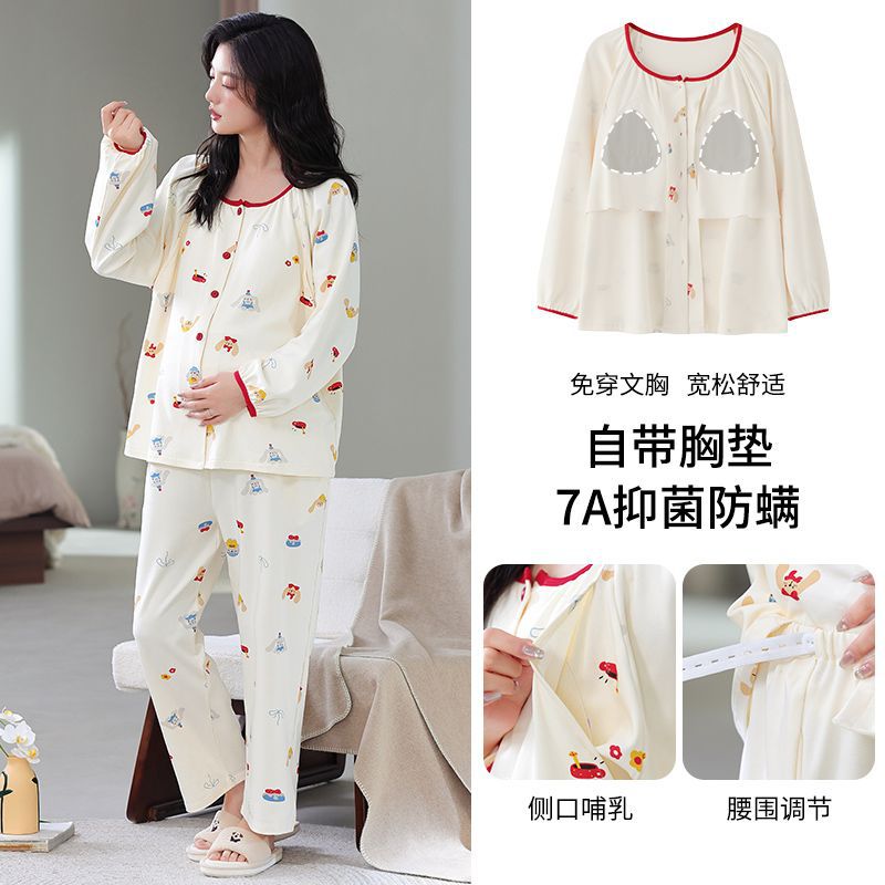 2025 Весенний наряд для беременных хлопчатобумажная пижама с нагрудным ковриком без бюстгальтера Антибактериальный наряд для кормления грудью