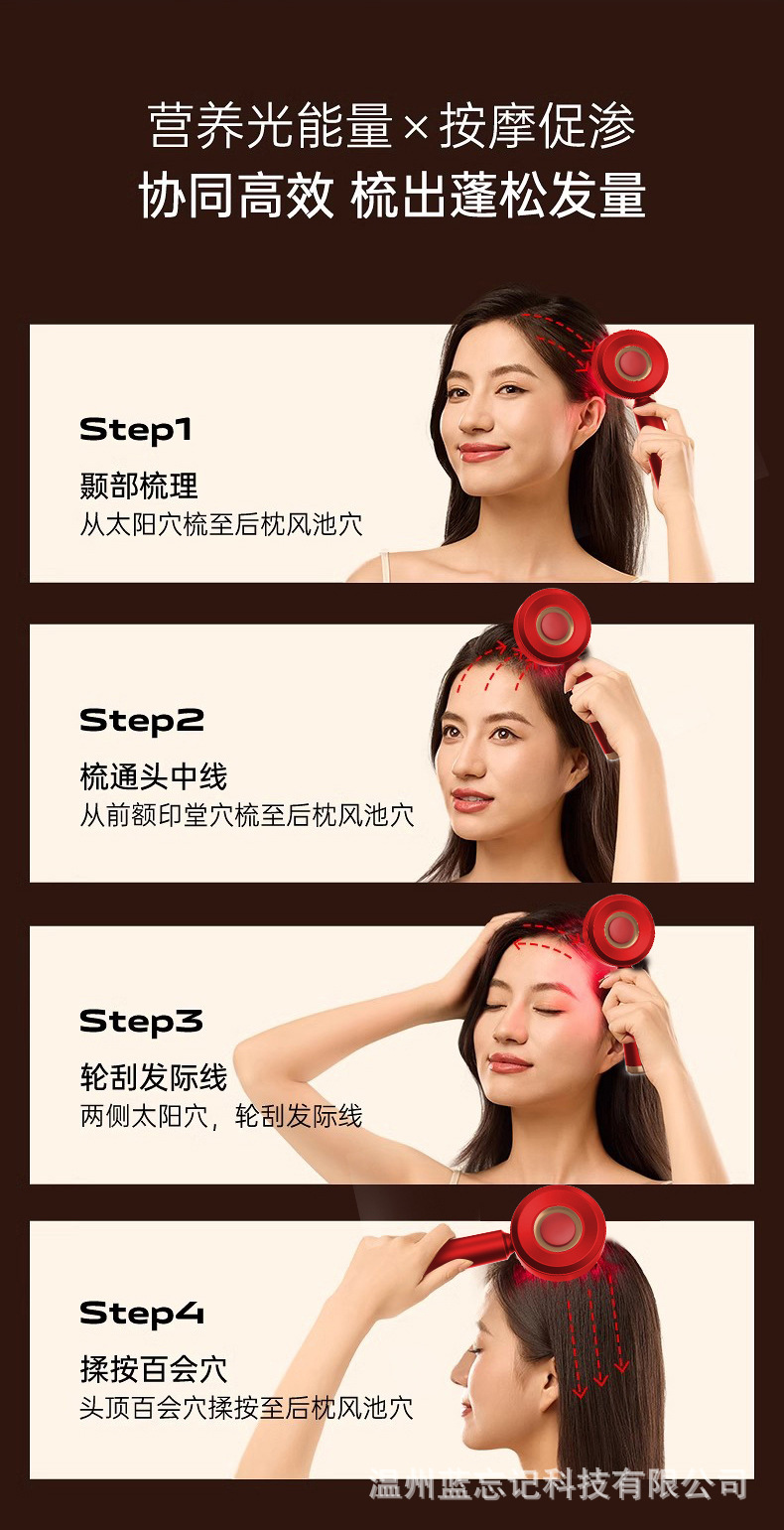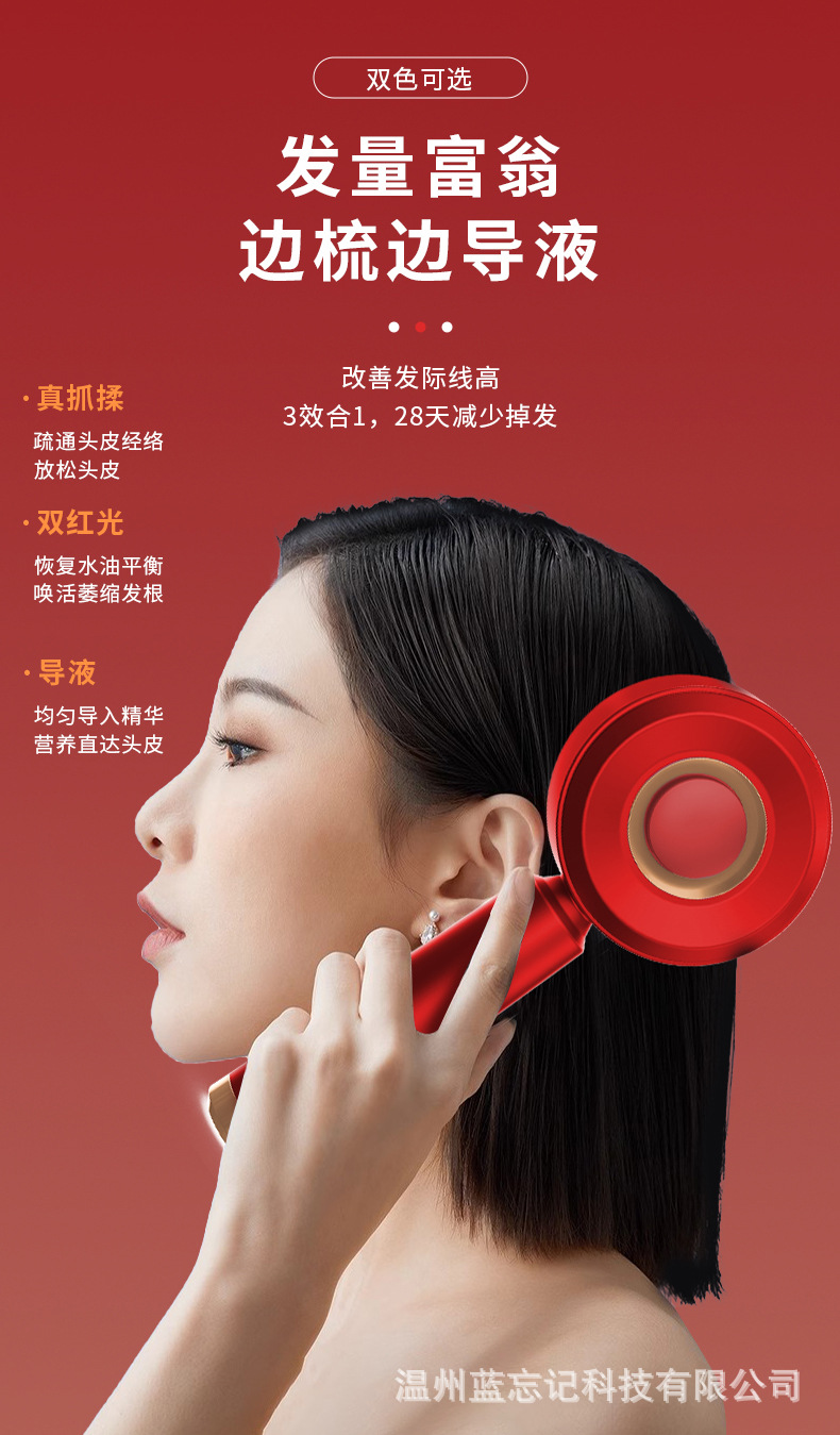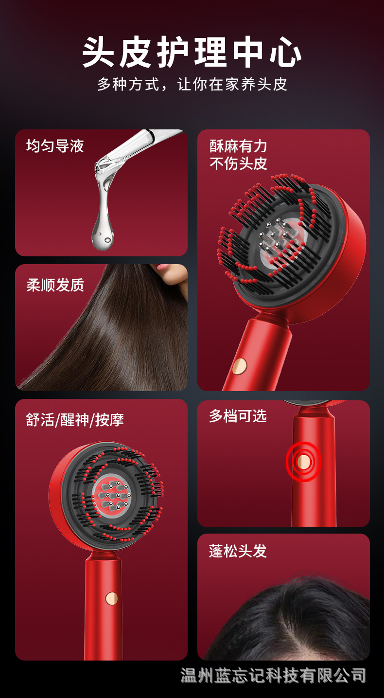 Электрическая массажная расческа с красным светом, жидкий направляющий аппликатор для разминания эссенции кожи головы, эфирное масло для волос, расческа-меридиан, массажер для головы