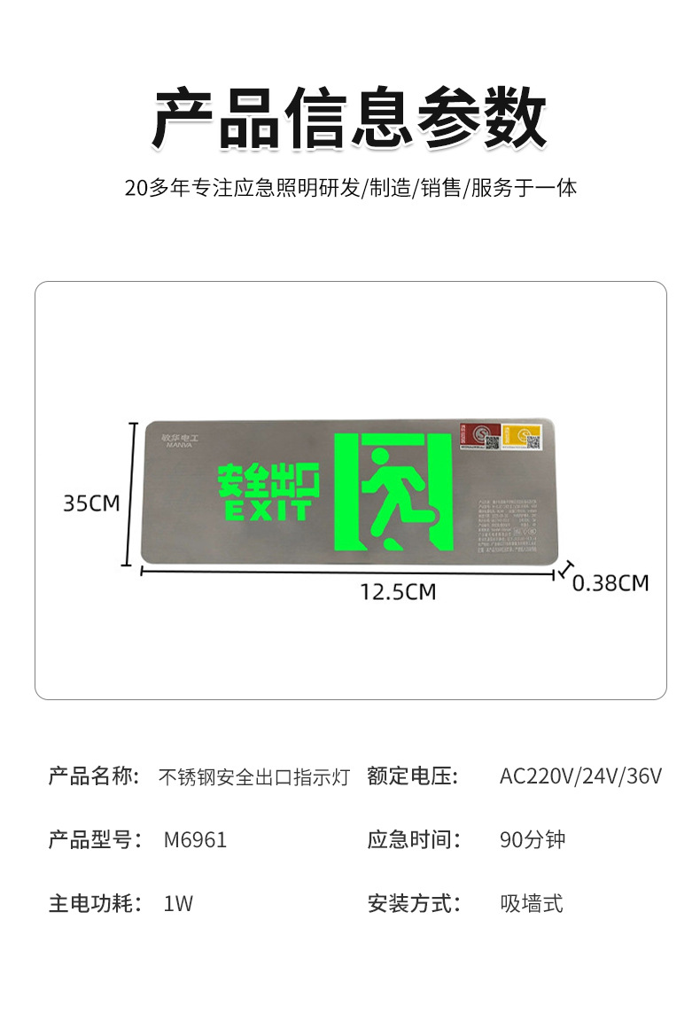 Выпускной индикатор пожарной безопасности из нержавеющей стали Minhua аварийный знак аварийной эвакуации