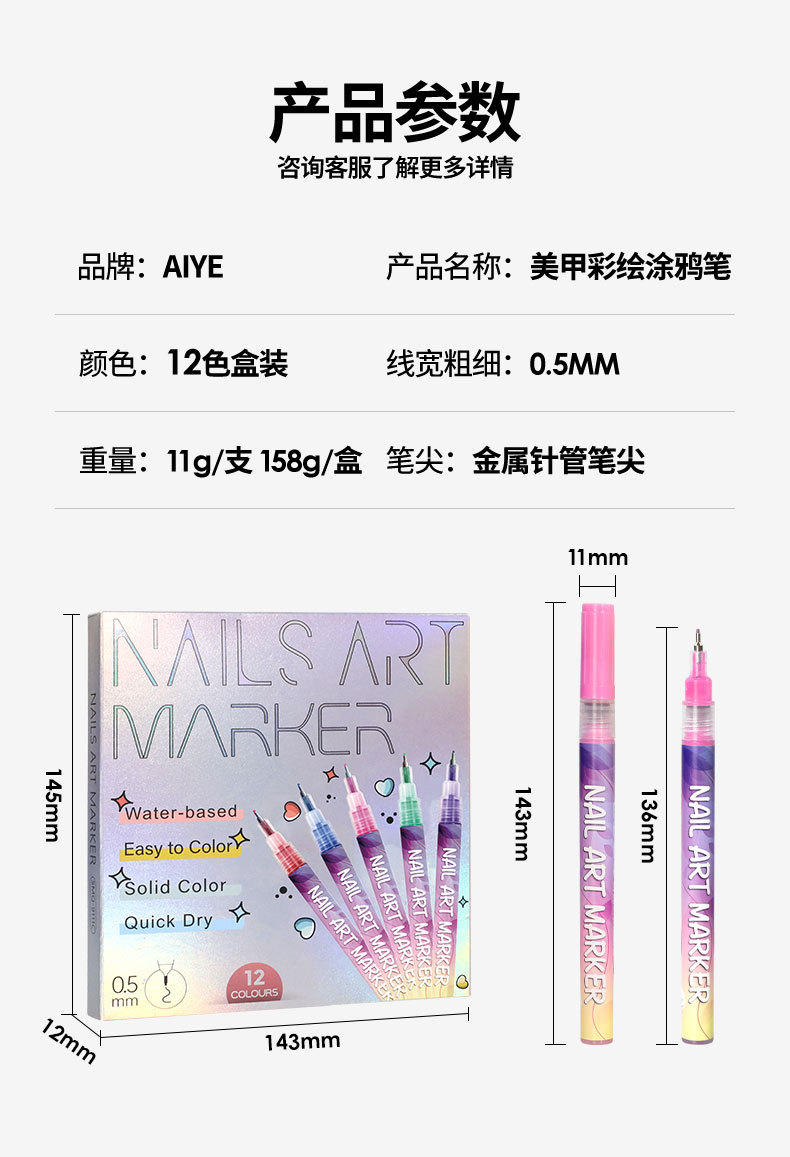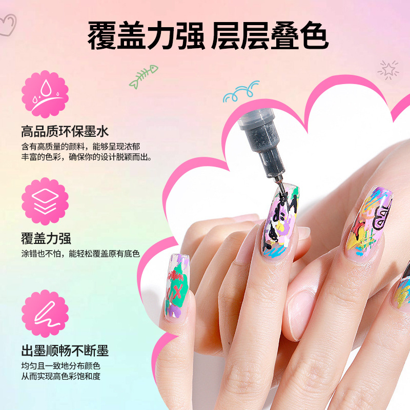Aiye 0,5 мм игольчатая трубка для дизайна ногтей, ручка для граффити, DIY носимая ручка для рисования ногтей, ручная роспись, точка, цветок, крючок, линия, акриловый маркер