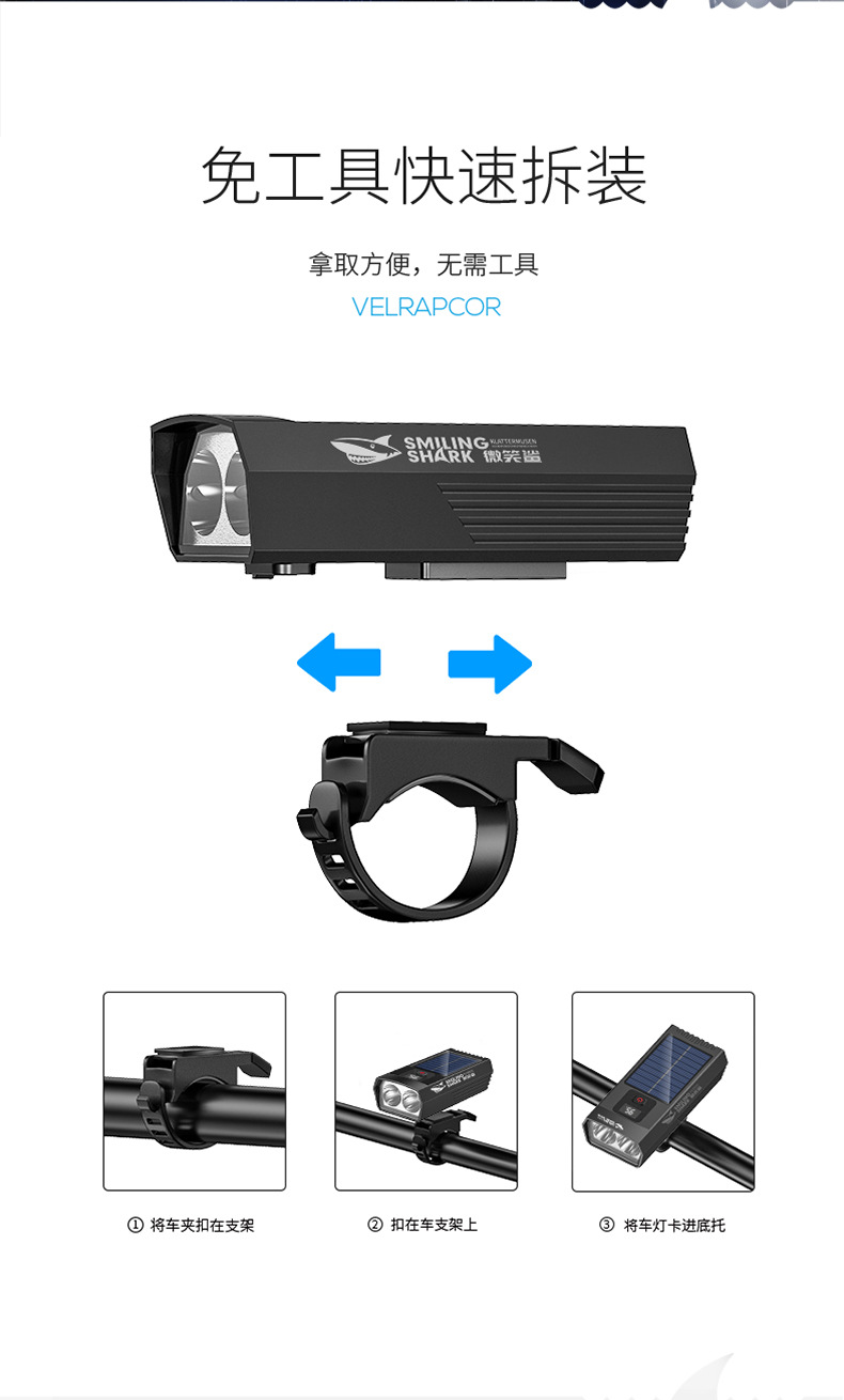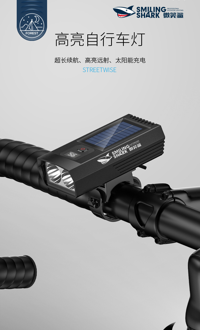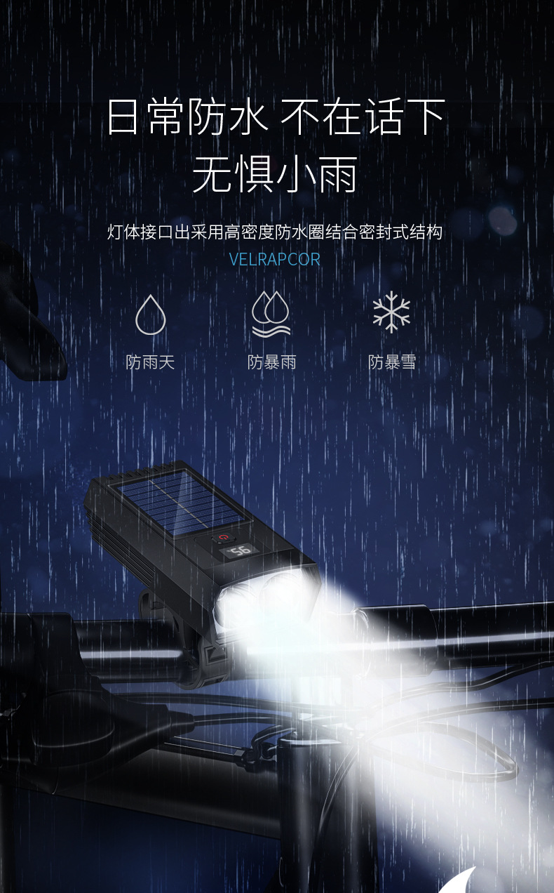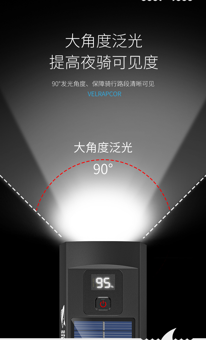 Солнечный уличный велосипедный фонарь с электрическим дисплеем, высокояркий велосипедный фонарь с двумя фонарями, легко разбирается и собирается, ночной велосипедный фонарь