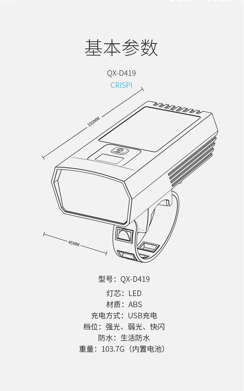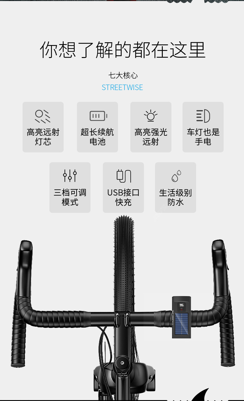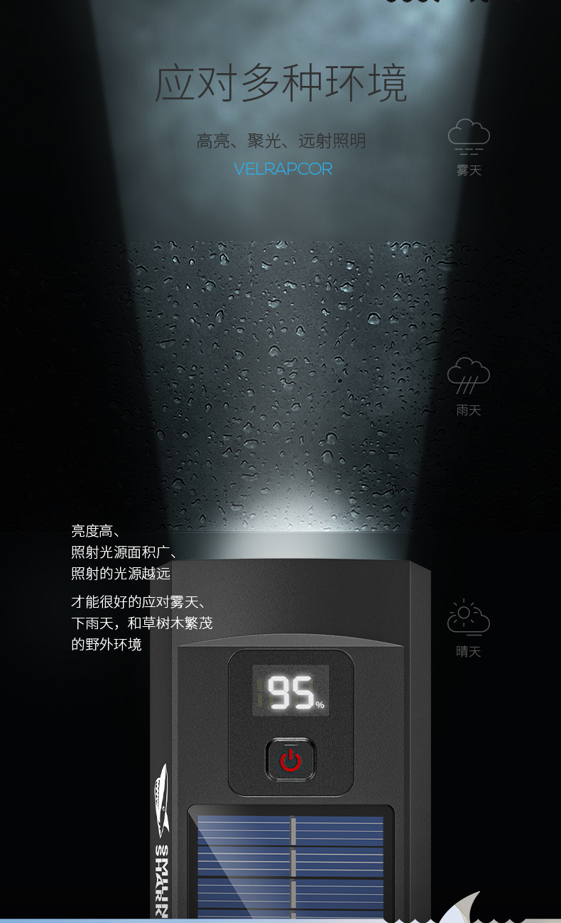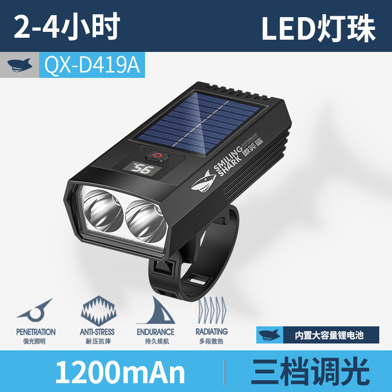 QX-D419A Солнечный уличный велосипедный автомобильный фонарь [встроенный аккумулятор 1200 мАч]