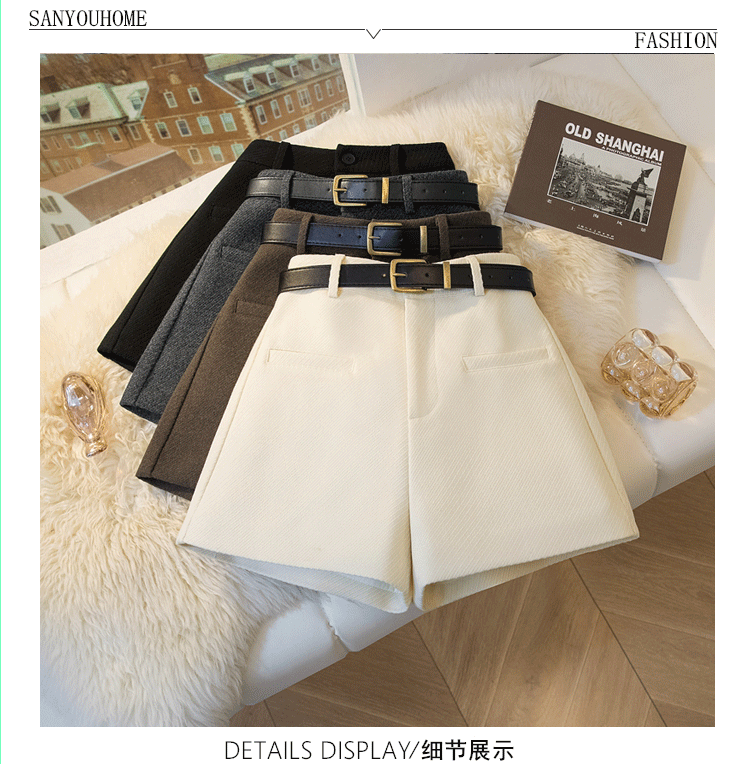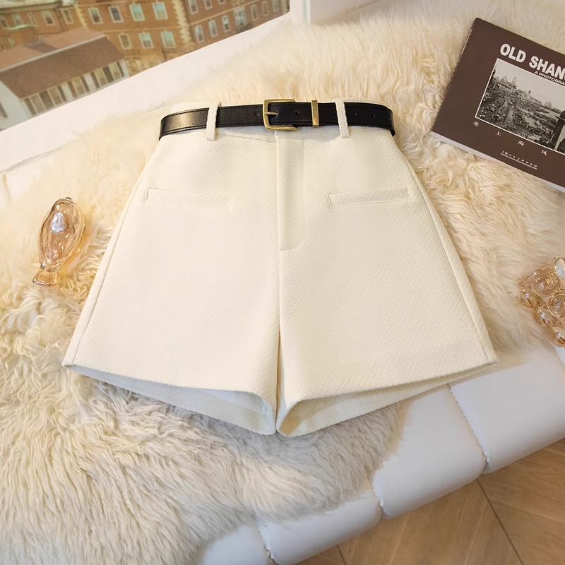 Носить шерстяные шорты для маленьких женщин осенью и зимой 2024 года серые сапоги с высокой талией брюки дикие тонкие и широкие брюки