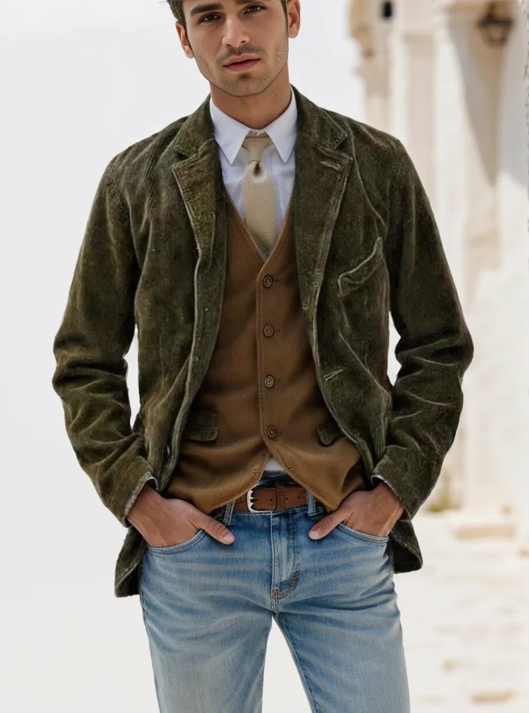 2024 трансграничная весна и осень вельветовый повседневный пиджак для внешней торговли однобортный сплошной пиджак мужской ретро мужской