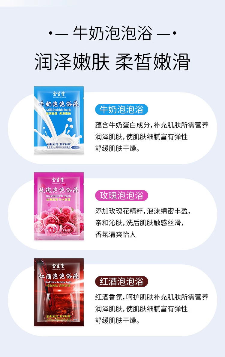 Ванна с молочным пузырьком Jinshengtang☆【60 мл】; Jinshengtang Rose Bubble Bath☆【60 мл】; Ванна с пузырьками для красного вина Jinshengtang☆【60 мл】; Баня с аквамарином и молоком☆【60 мл】; Ванночка с пузырьками в виде звезды аквамарина☆【60 мл】; Аквамаринная ванна с пузырьками красного вина ☆ 【60 мл】; Молочная ванна Jinshengtang☆【40 мл】; Аквамарин Ароматная молочная ванна☆【60 мл】; 20 пакетиков молочной пузырьковой ванны + лепестки роз 50 г.; 20 пакетиков для ванны с пузырьками роз + лепестки роз 50 г.; 20 пакетиков ванны с пузырьками красного вина + лепестки роз 50 г; 20 пакетиков жидкости для ванны из молочной пены + 50 г лепестков роз.; Лепестки роз 50г
