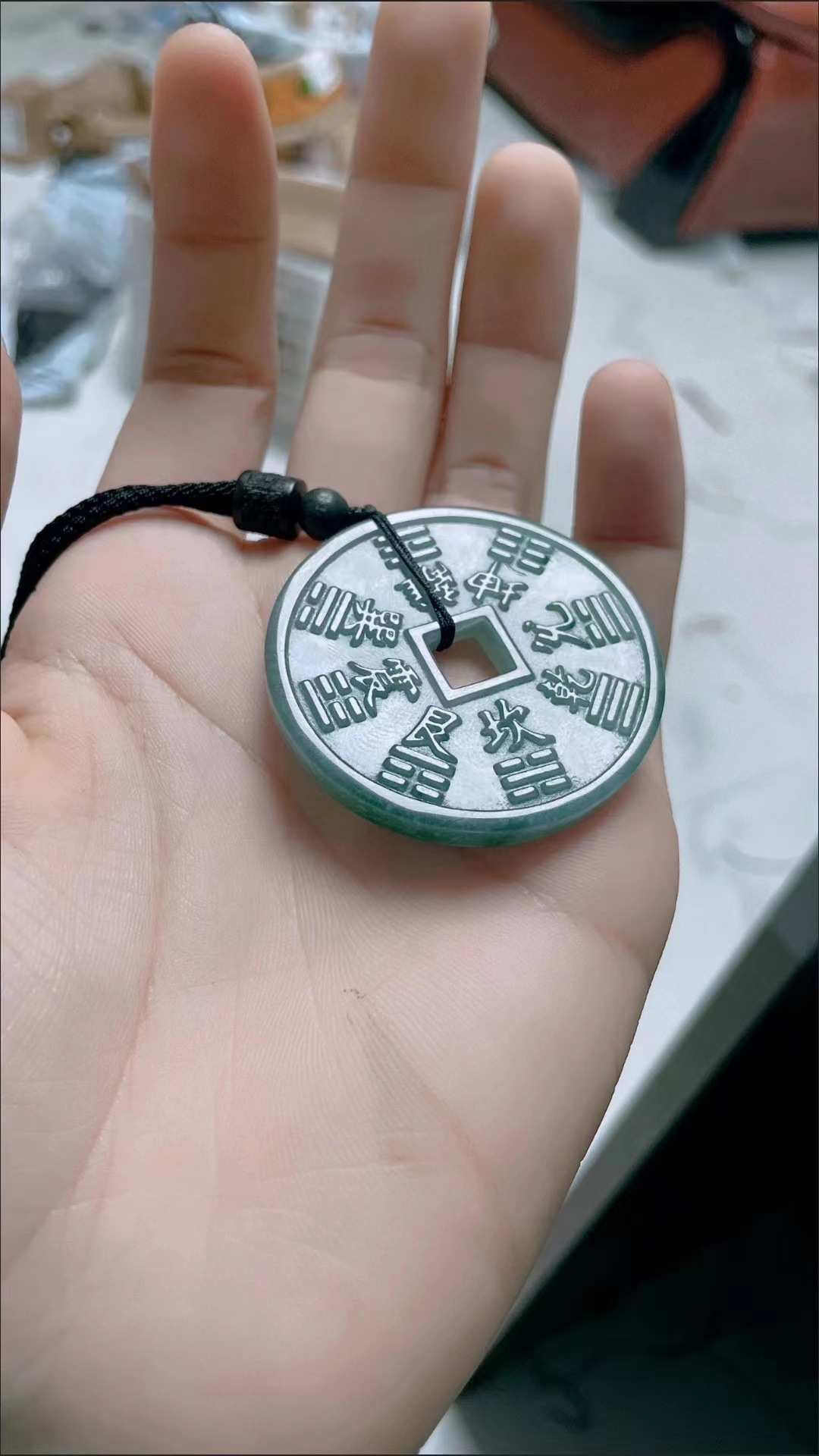 Натуральные товары Изумрудный синий водный горный призрак тратит деньги на нефритовый кулон