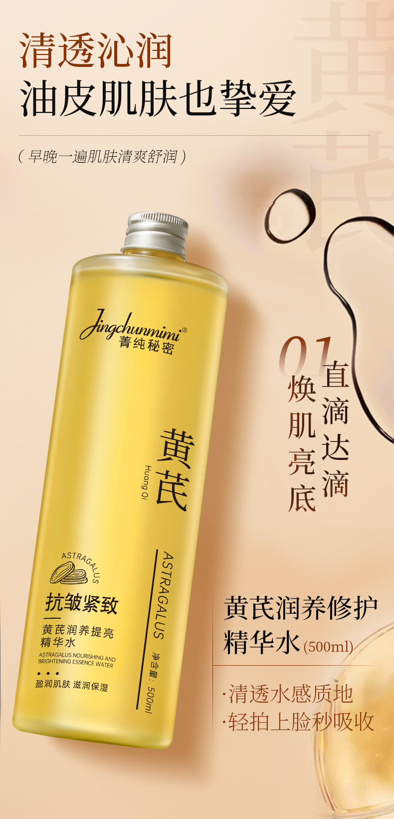 [Национальный бренд] 500 мл большой емкости астрагал эссяная вода нежные поры осветляют тонер кожи производитель