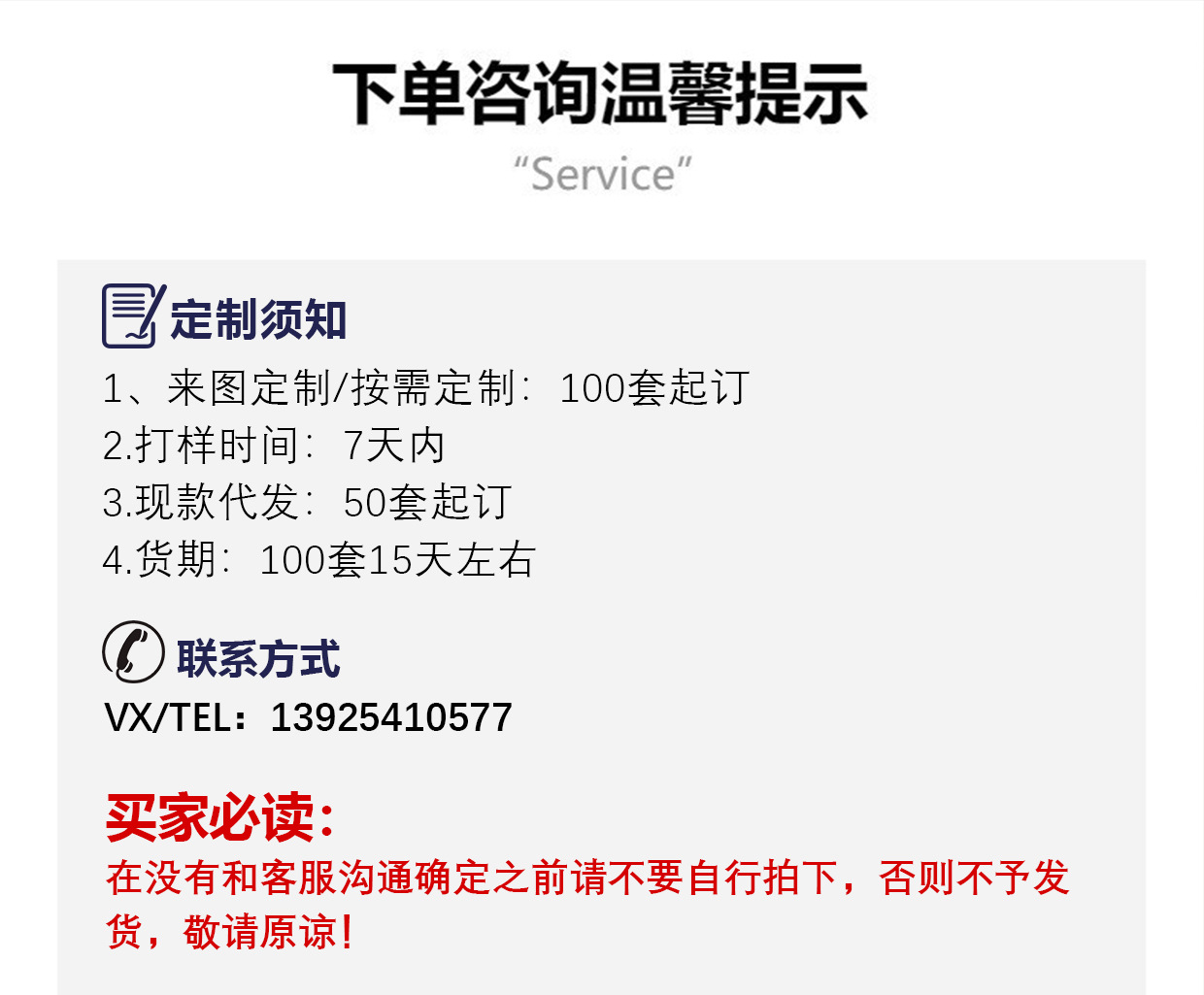 Минимальный заказ 10 комплектов для доставки наличными.; Минимальный заказ 100 комплектов, настроенных по требованию.