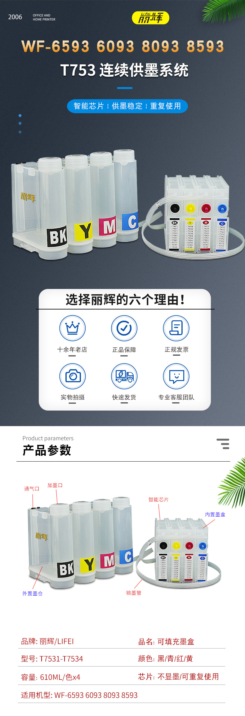 Применимо для Epson WF-6593 6093 8093 8593 принтера для модификации T753 черный цветной картридж