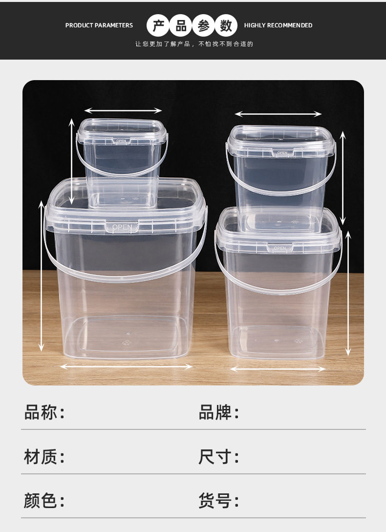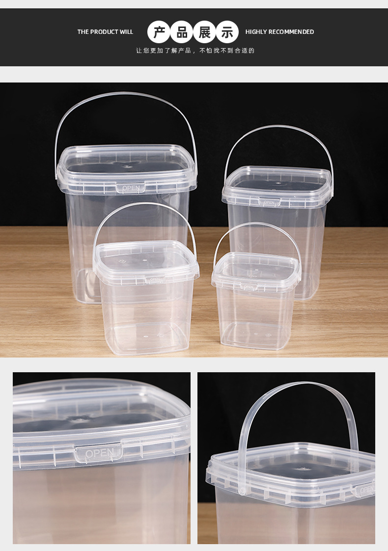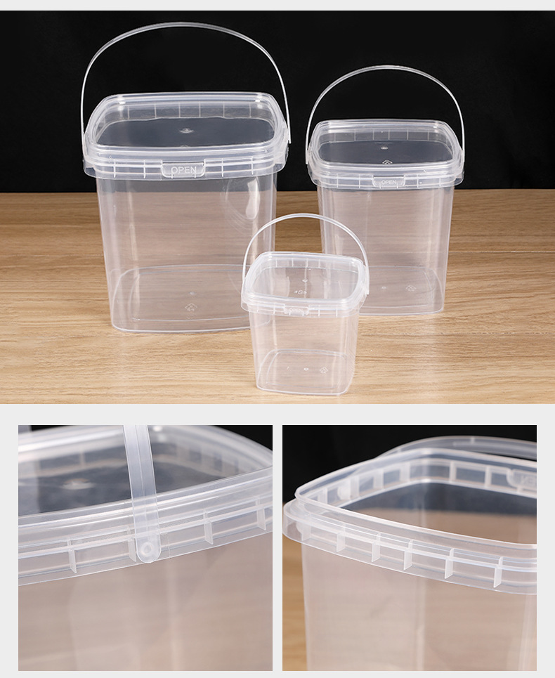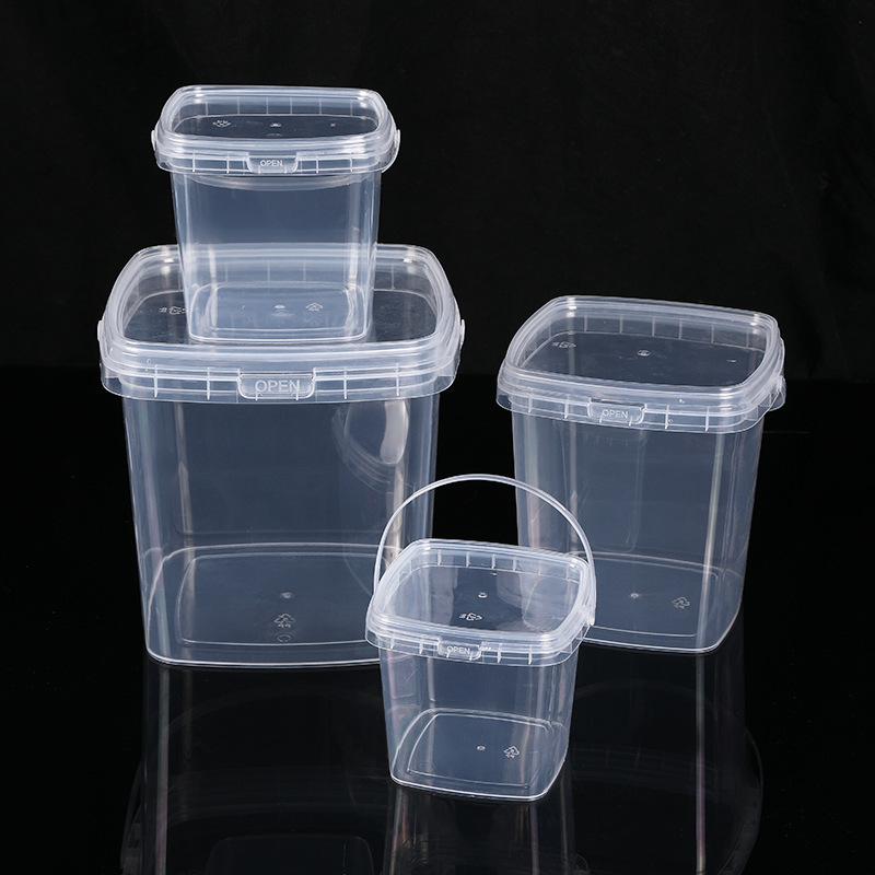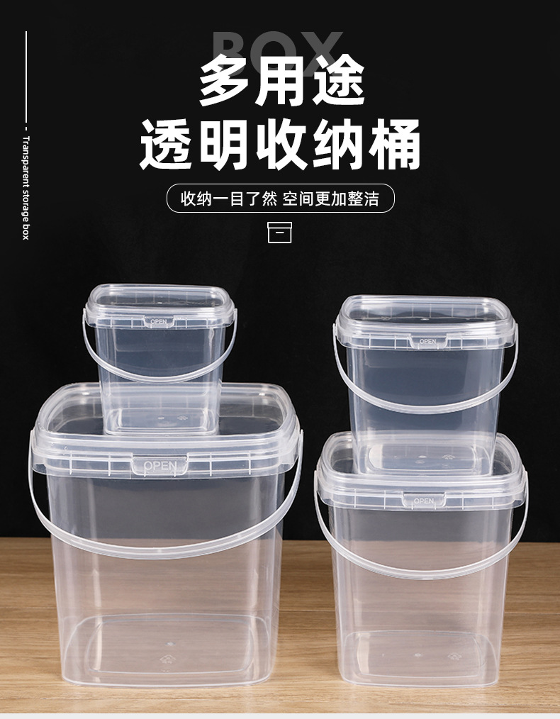 Заводские продажи оптом настольных прозрачных пластиковых контейнеров для хранения, портативных квадратных пластиковых ведер, прозрачных контейнеров для продуктов