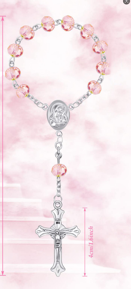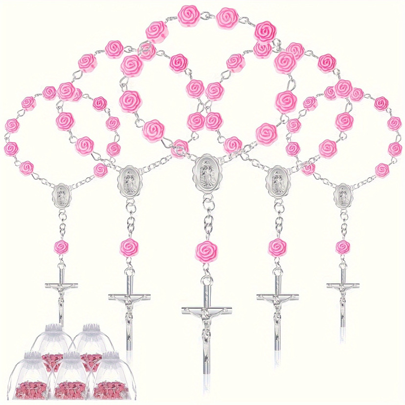 Крестоносный бестселлер Amazon: детский крестильный розовый четок, подарок на причастие, свадебный подарок, возвратный подарок, цепочка для пальцев, четок