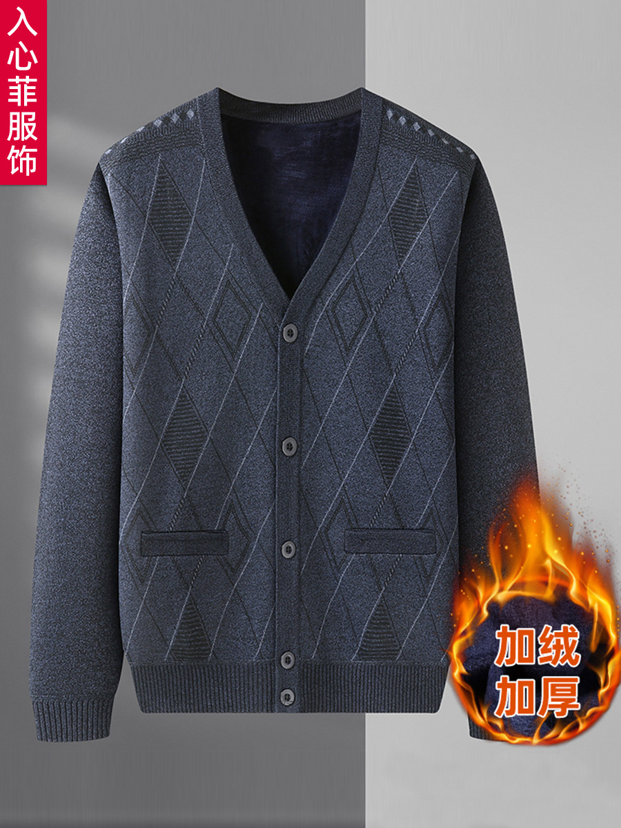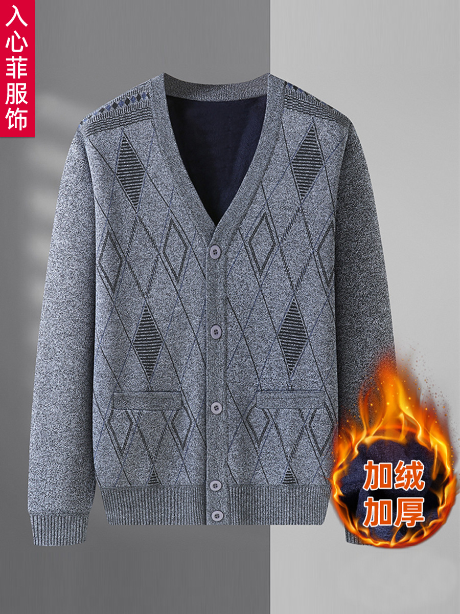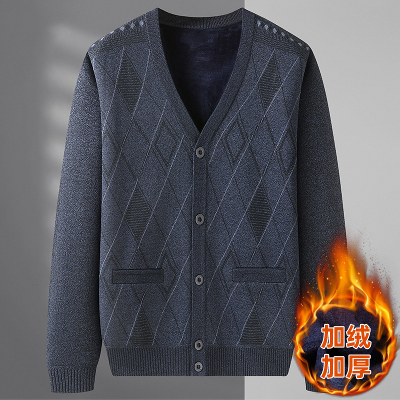 Мужчины среднего и пожилого возраста кардиган свитер осенний трикотаж папа осенний и зимний дедушка бархатный утолщенные теплые куртки