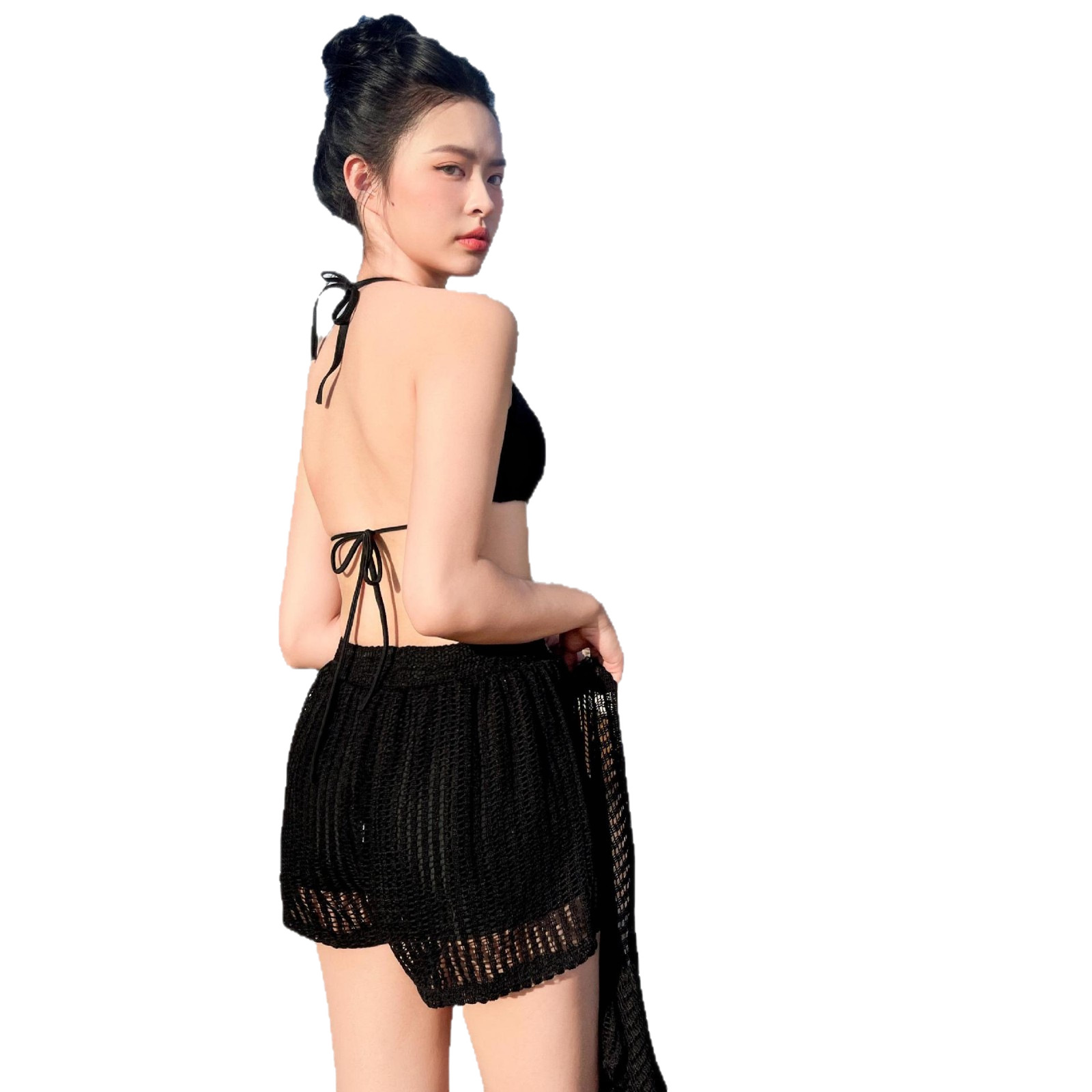 Новый стиль женский сплит три комплекта сексуальный чистый вязаный ажурный блузка пляжный горячий источник женский купальник оптом