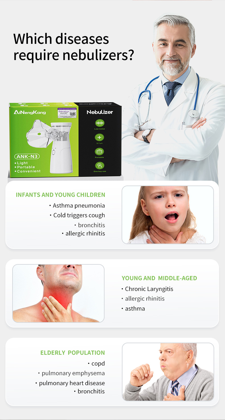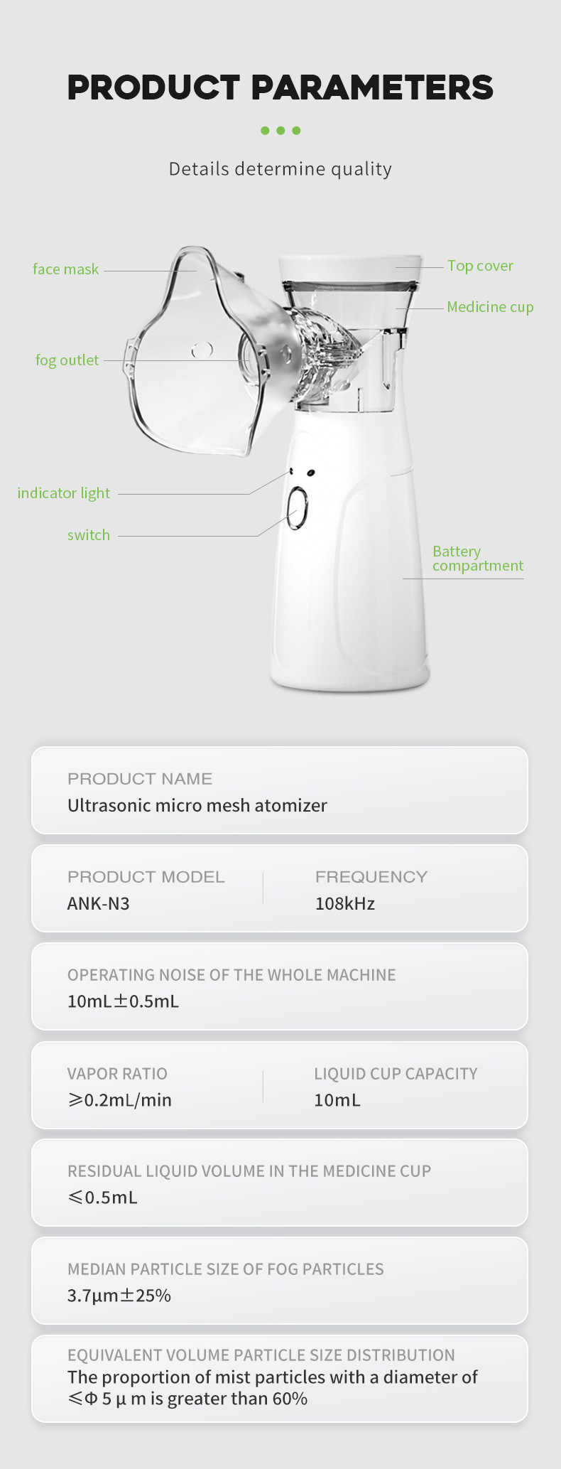 Медицинский портативный ингалятор с микросетчатым компрессором, низким энергопотреблением, большой емкостью и сверхбольшим объемом распыления, для домашнего использования.