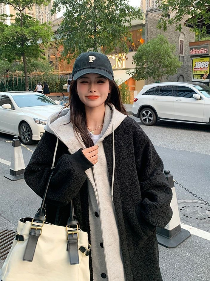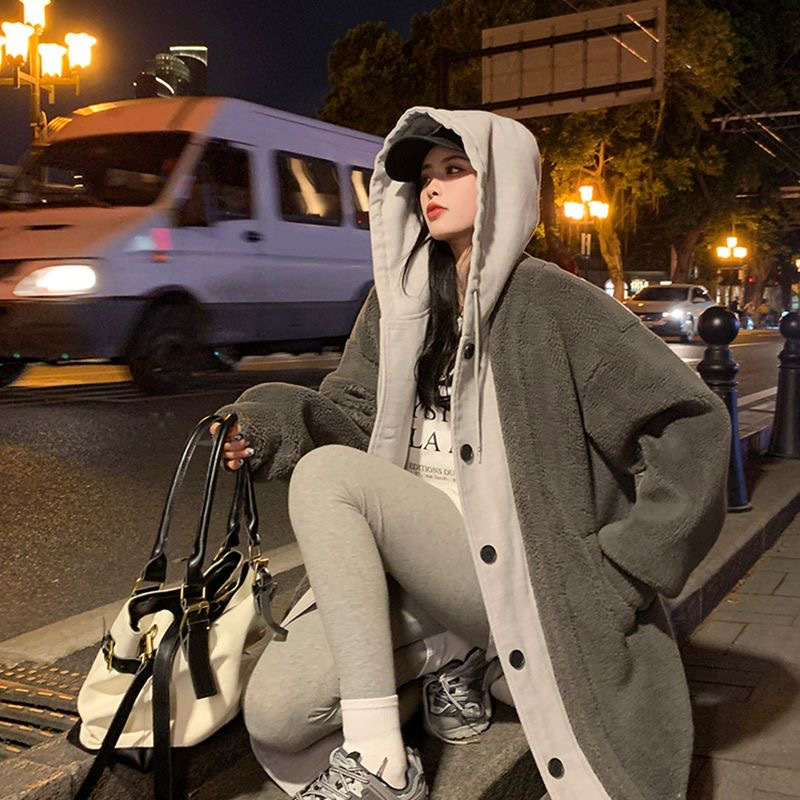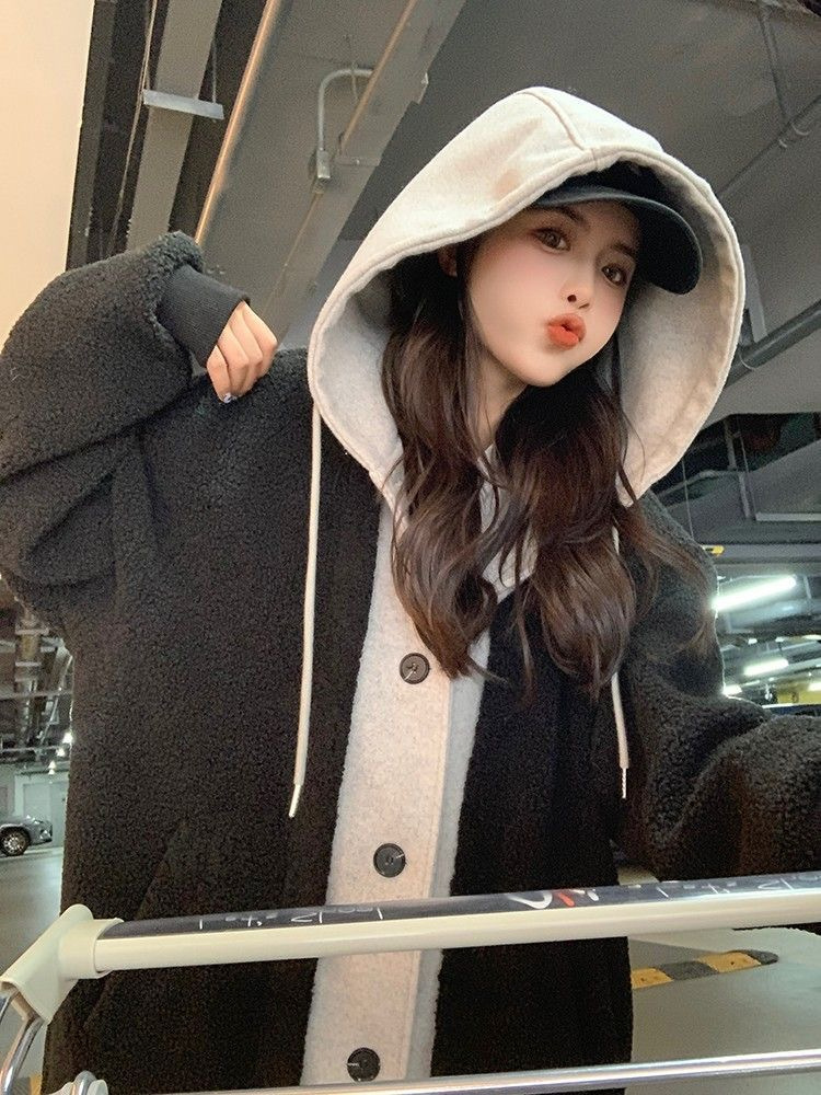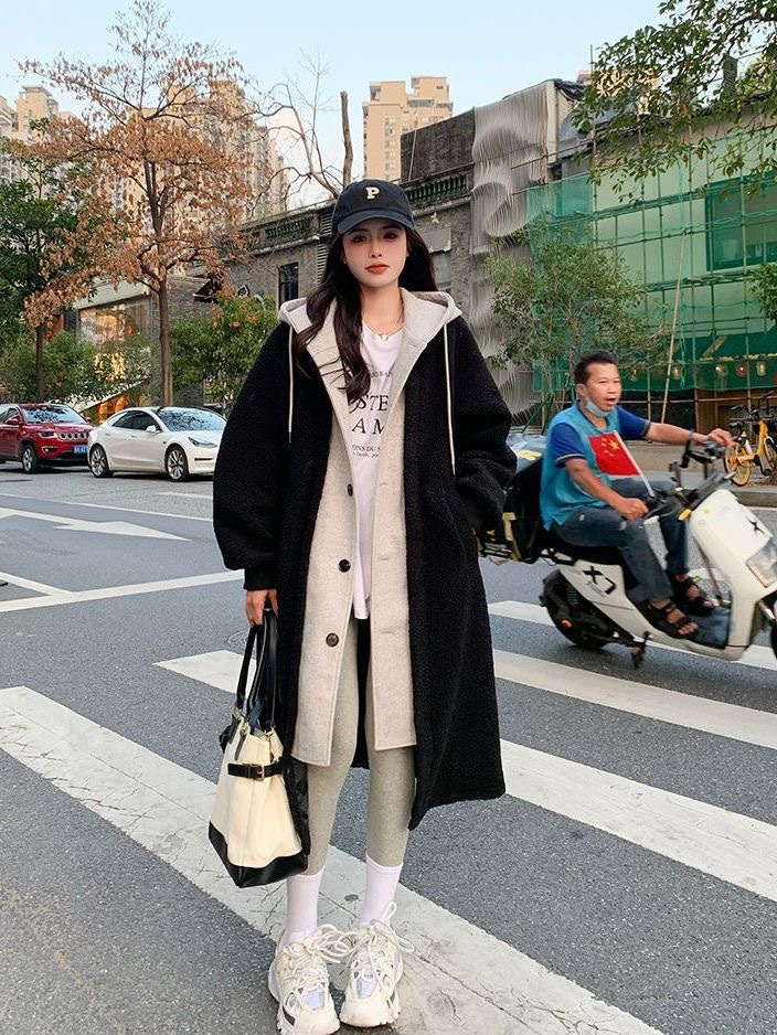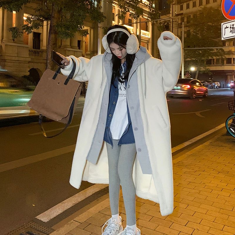 Южная Корея chic2024 осень-зима новая длинная чехарная юбка куртка кашемир дикие свободные модные куртки ins