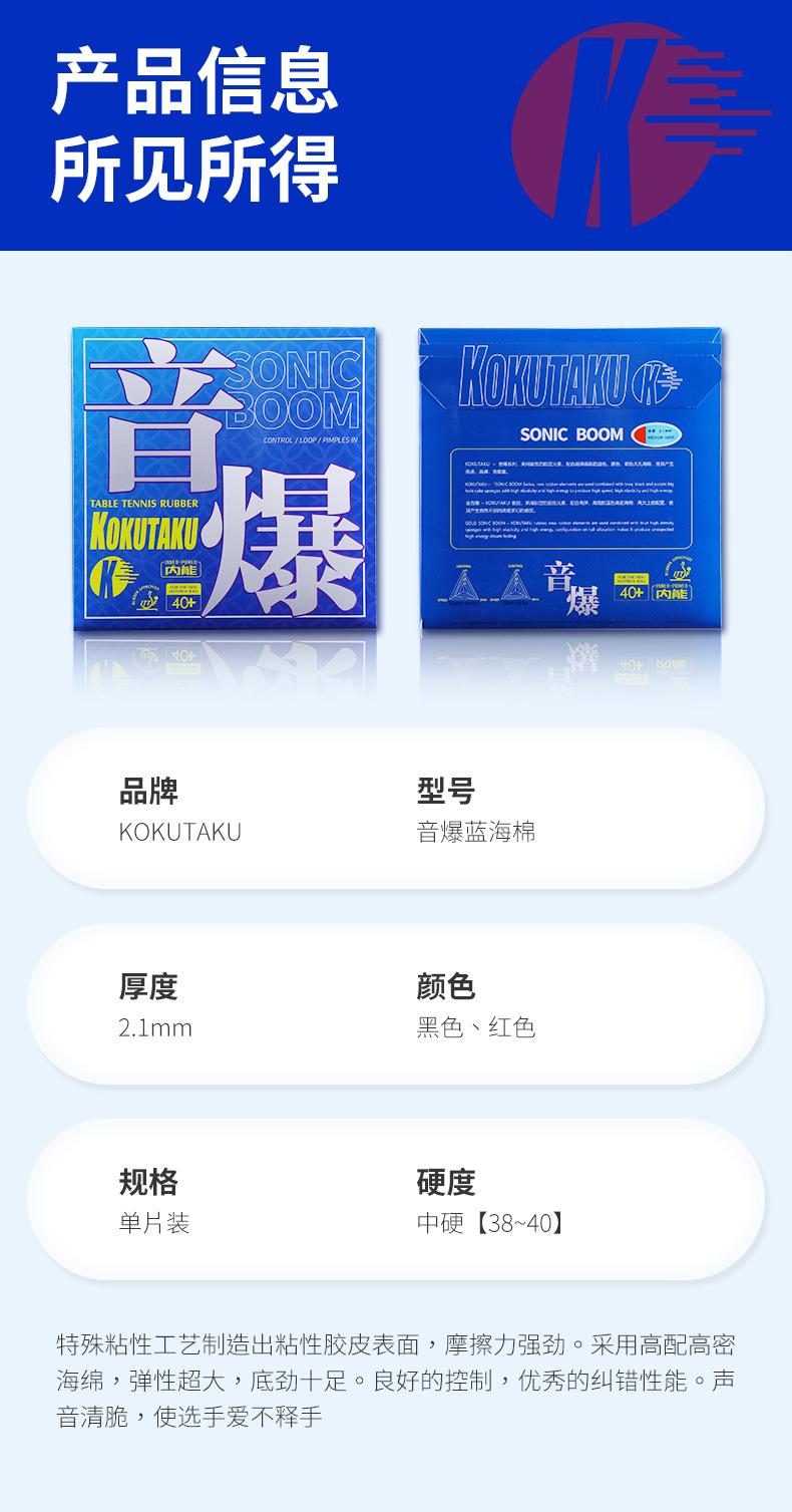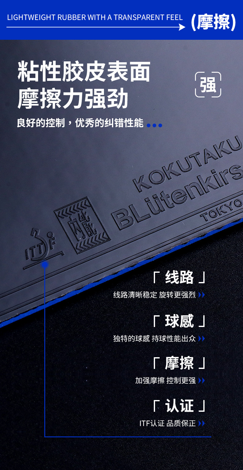 Накладка для настольного тенниса KOKUTAKU с высокой плотностью, синий губчатый слой для мощного удара, антиадгезивная, для вращения и быстрой атаки, внутренняя энергия.