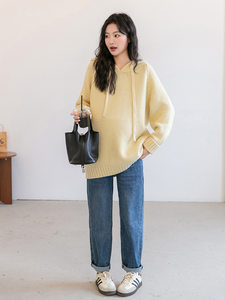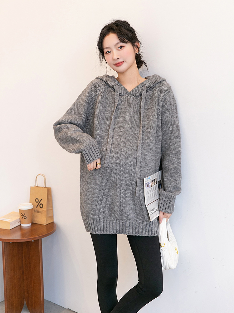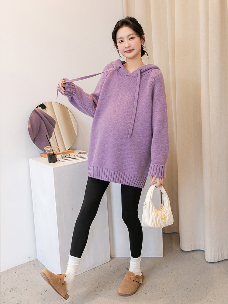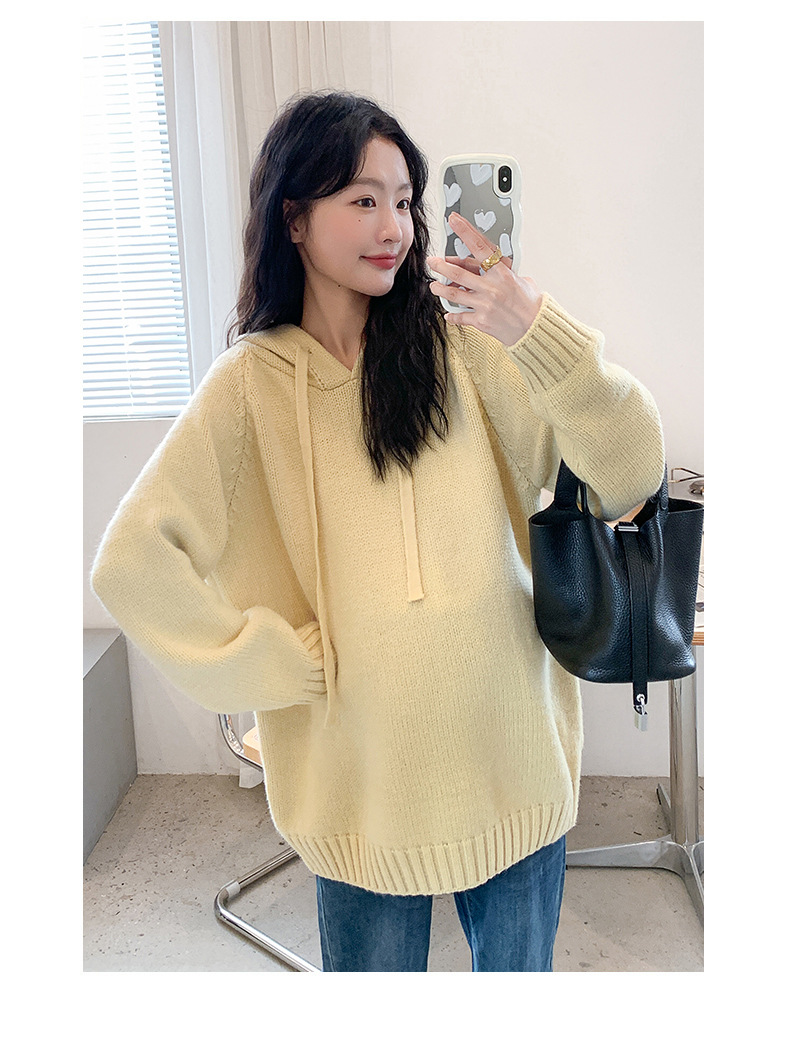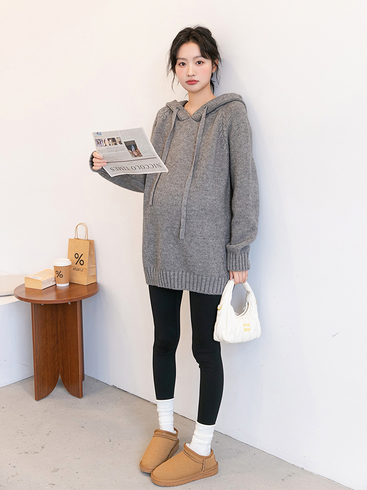 Зимняя новая одежда для беременных мягкая вязаная толстовка с капюшоном