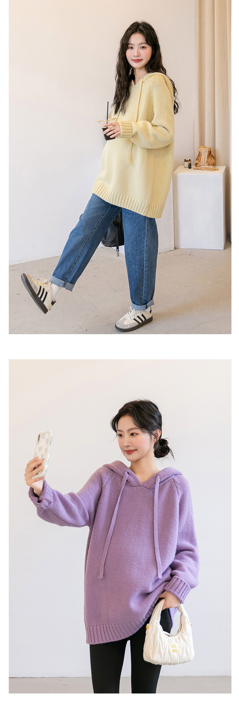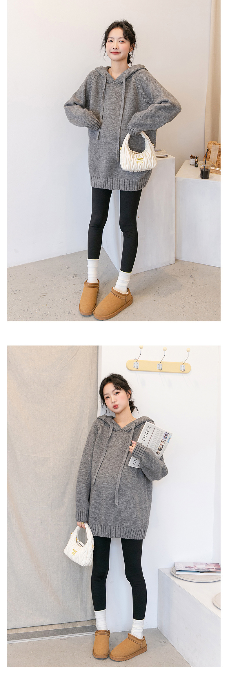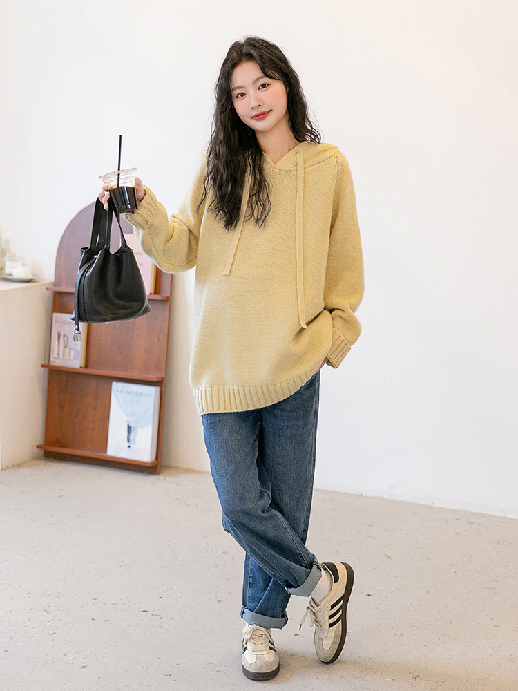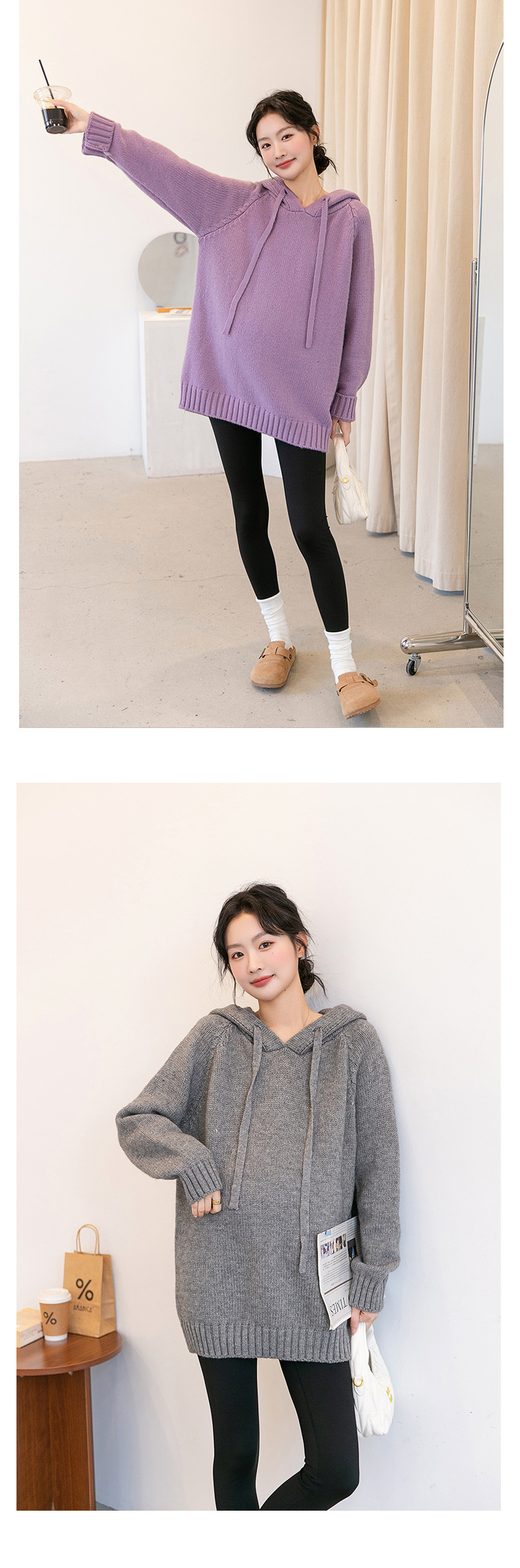 Зимняя новая одежда для беременных мягкая вязаная толстовка с капюшоном