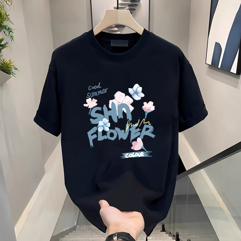 Летняя футболка с короткими рукавами женская корейская версия хлопчатобумажная черная футболка с половиной рукава для мужчин и женщин
