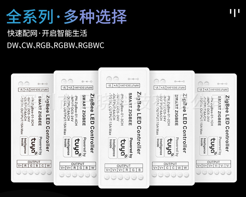 zigbee-DW монохромный; двухцветная температура zigbee-CW; zigbee-RGB красочный; zigbee-RGBW; zigbee-RGBCW