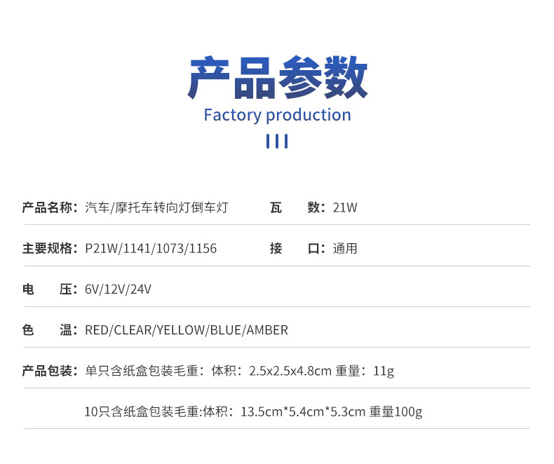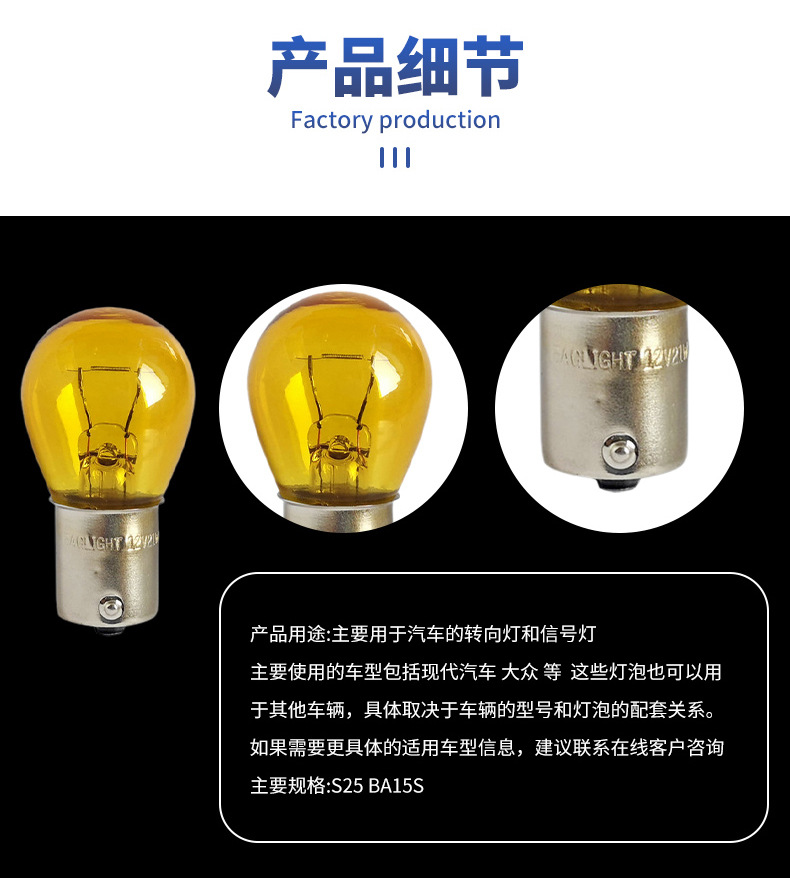 Производитель оптом P21W/1141/1073/1156 автомобильный поворотный фонарь 6V12V24V янтарный красный синий желтый