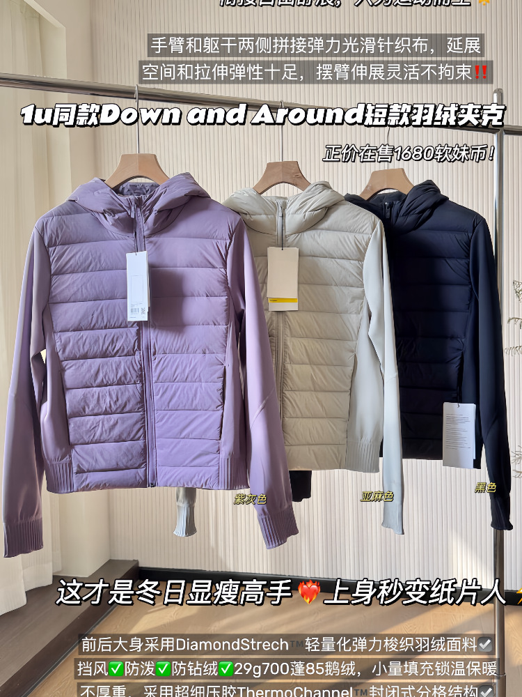 lulu轻薄羽绒服平替户外跑步瑜伽短款连帽修身运动羽绒服lulu外套 露露羽绒服 lulu羽绒服公版 downandround lulu外套压胶羽绒服
