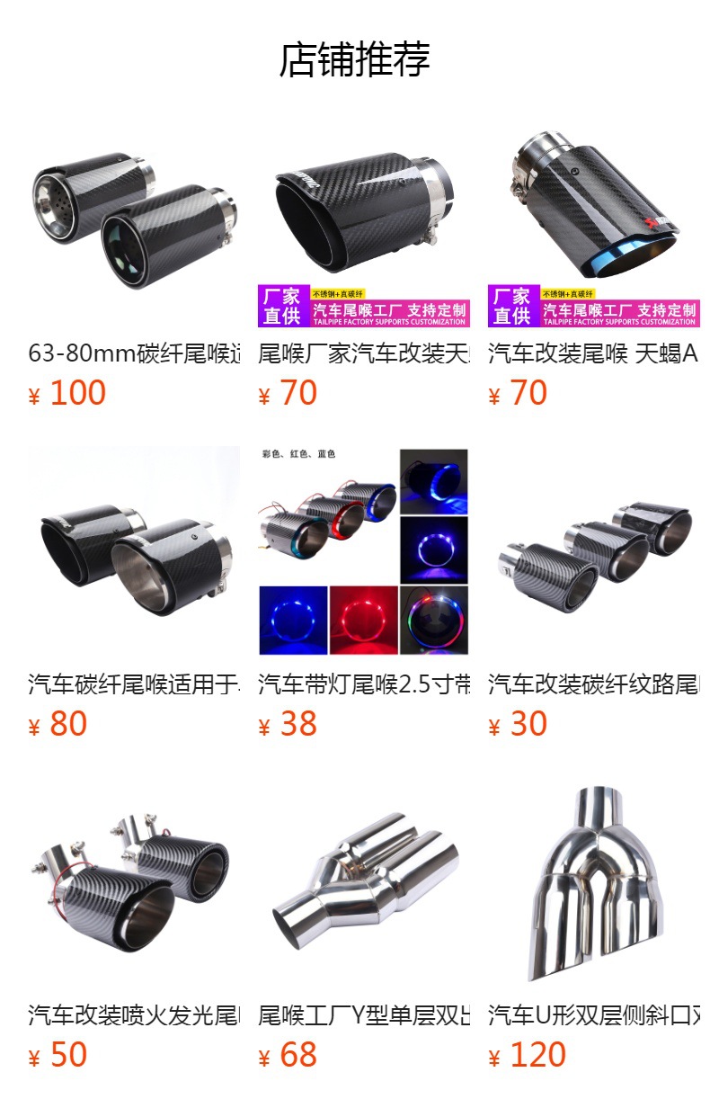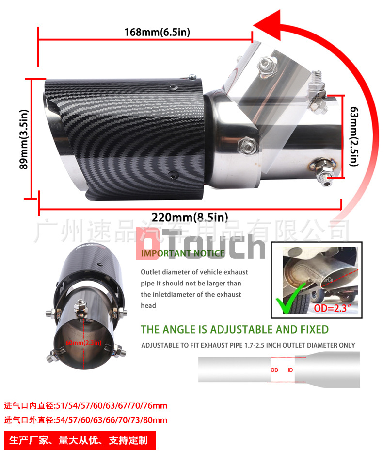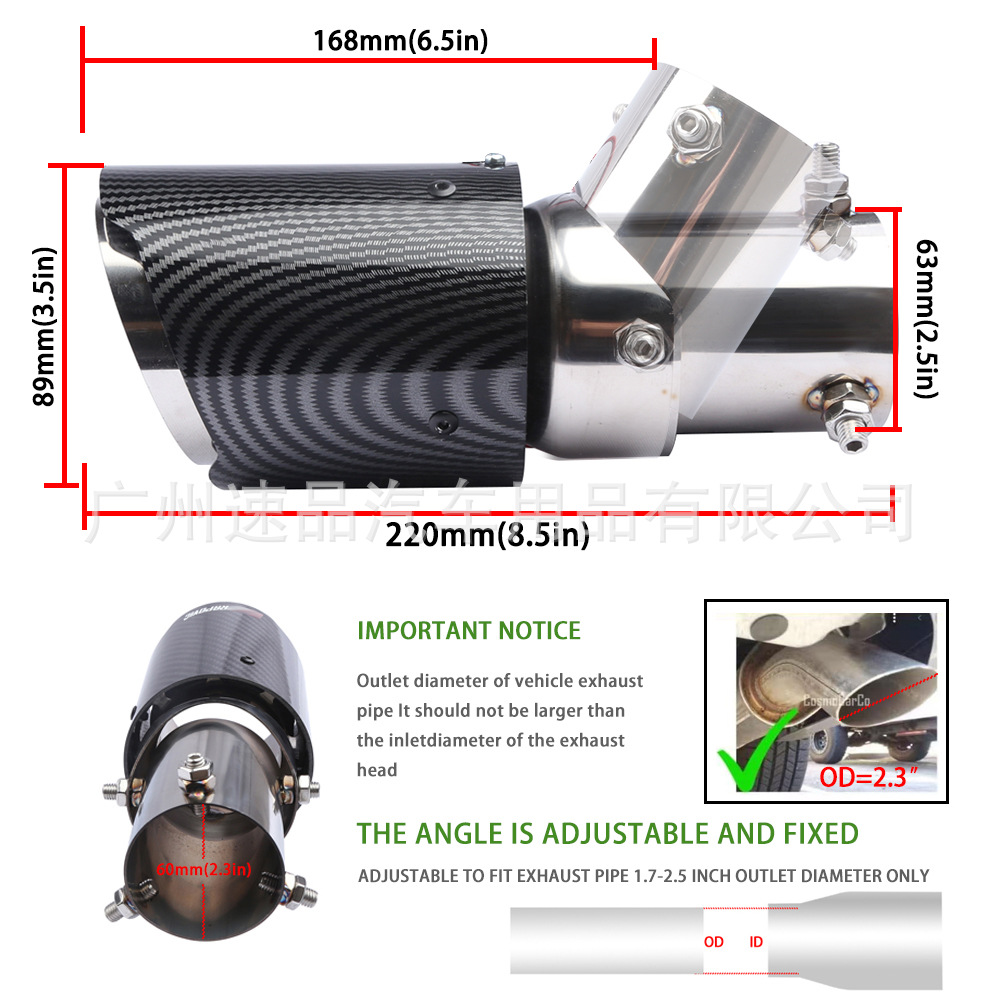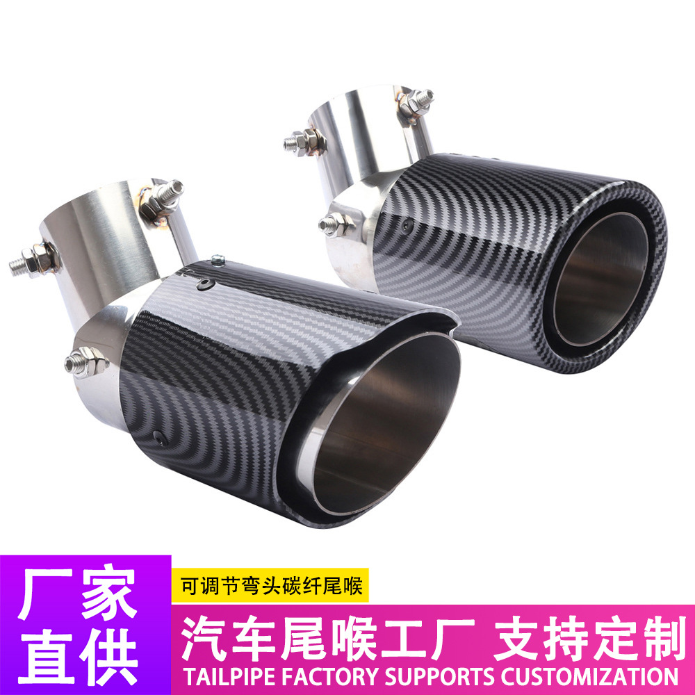 汽车尾喉工厂汽车改装碳纤纹路尾喉63-89mm不锈钢尾喉可调弯头ABS塑料外壳尾喉