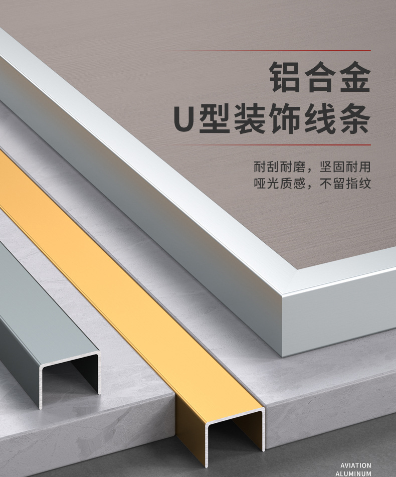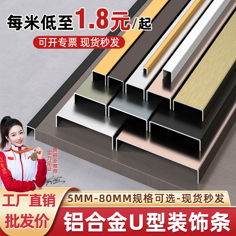 Алюминиевый профиль U-образной формы для потолка и стен, декоративная врезная U-образная линия, металлический титановый декоративный профиль, отделочный профиль
