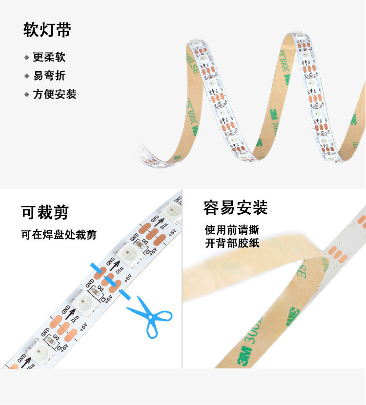 WS2812B Призрачный фонарь с 5V встроенный IC с одной точкой с одним управлением водонепроницаемый один свет один обрезка 5050rgb Полноцветная лента