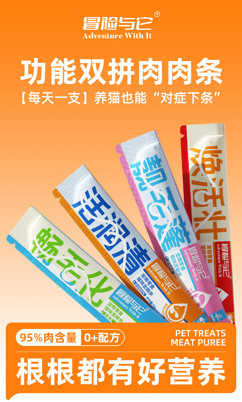 Adventure and Its Cat Snacks Свежее мясо Влажный корм Котячьи полоски Питательный и ароматный консервированный корм для кошек для взрослых и молодых кошек Нейтральный влажный корм для кошек