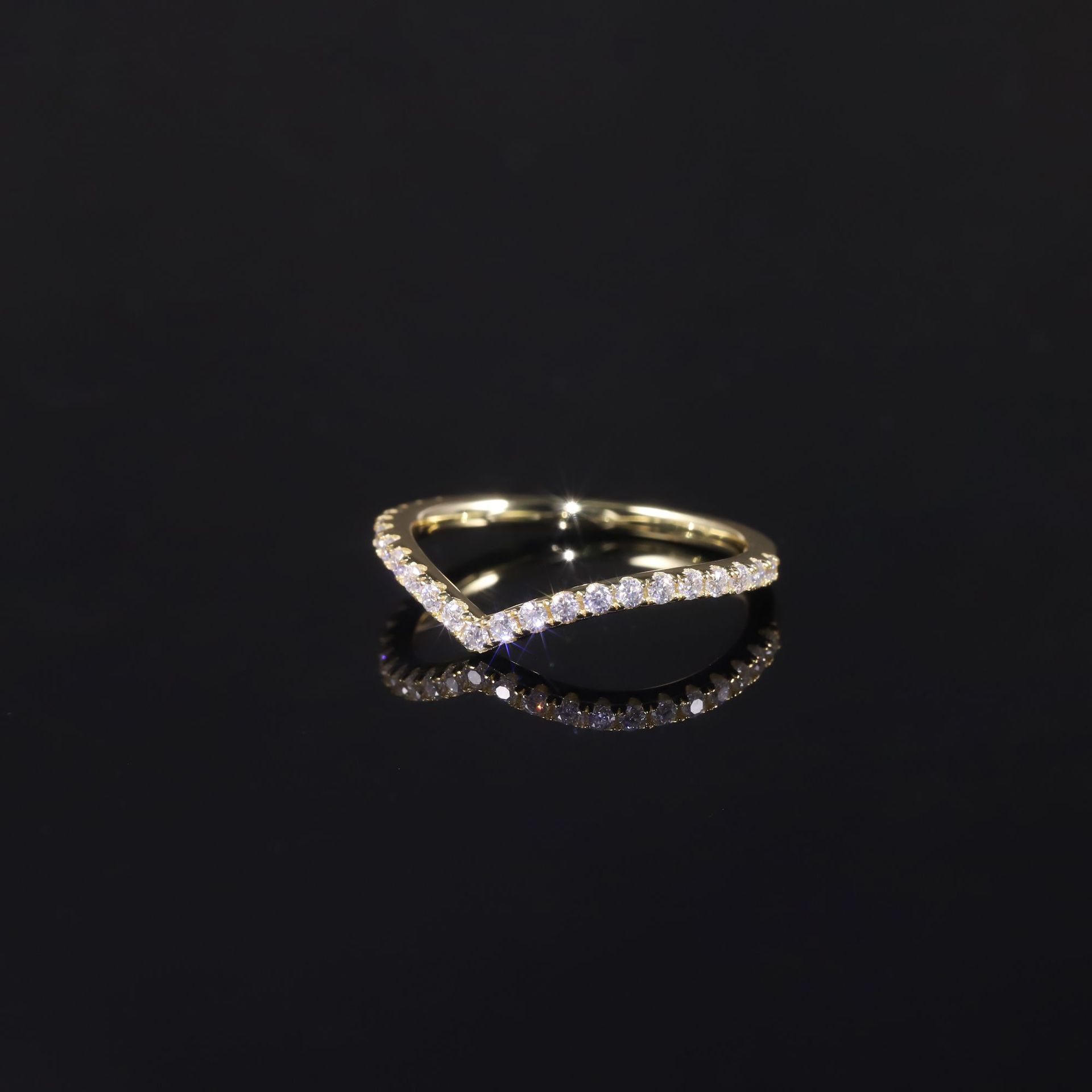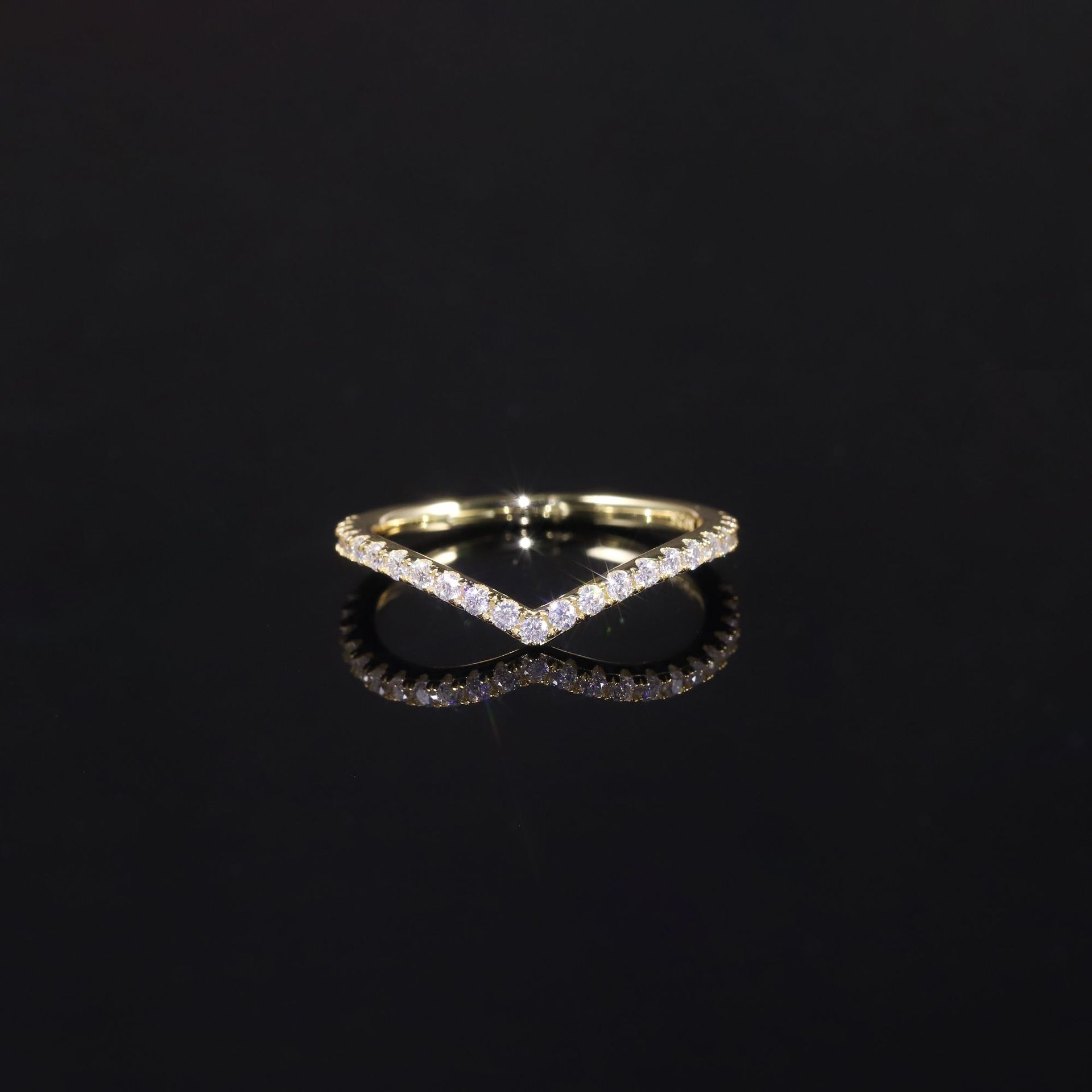 S925 Серебряная лаборатория искусственно культивирует кольцо с бриллиантом V-образное кольцо, чтобы носить кольцо женское кольцо Ring Nins простой холодный ветер