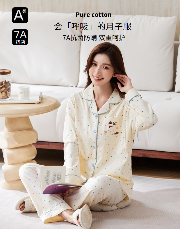 7A Антибактериальные беременные пижамы типа A хлопчатобумажная одежда для родов весной и осенью