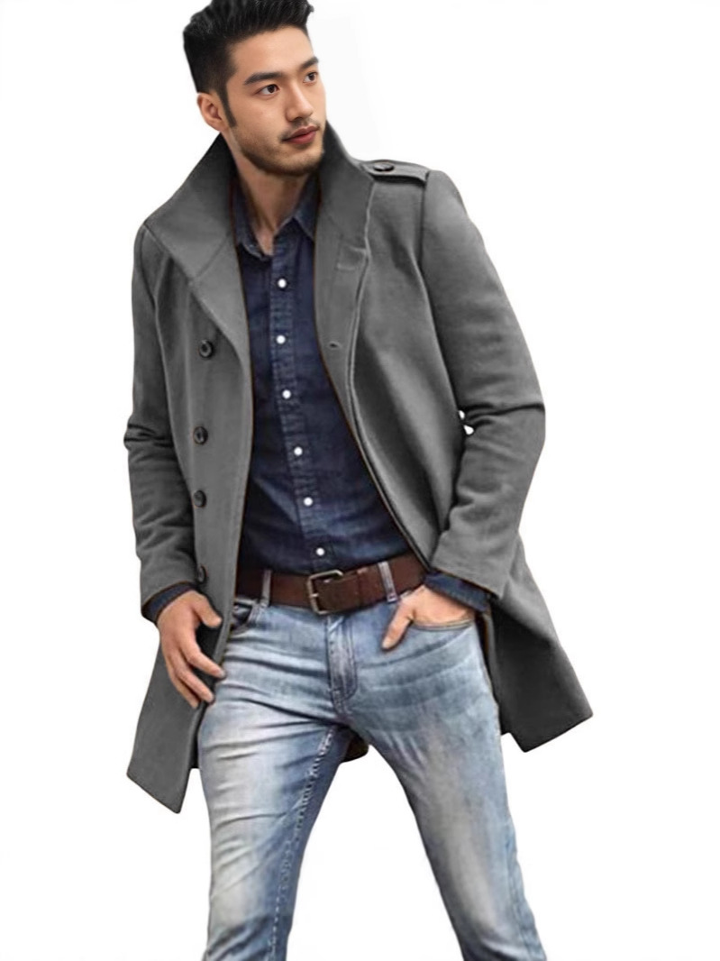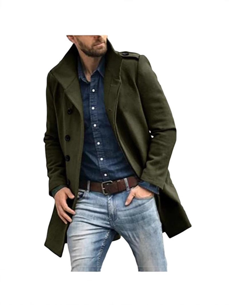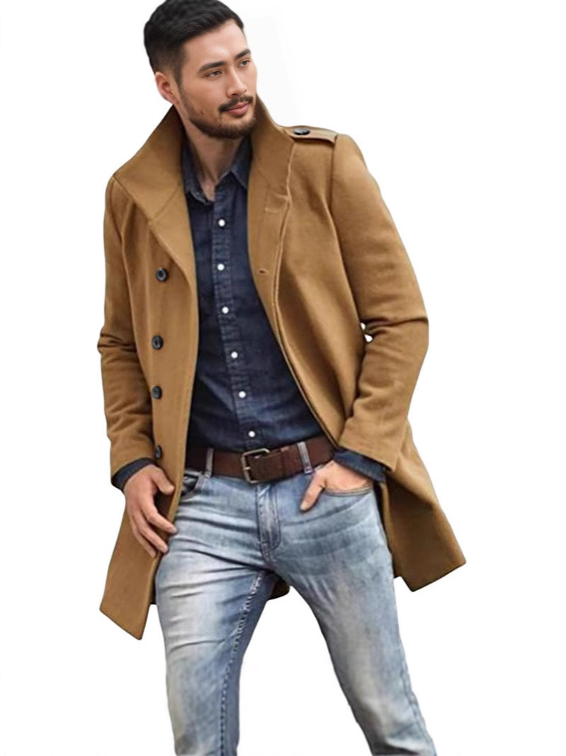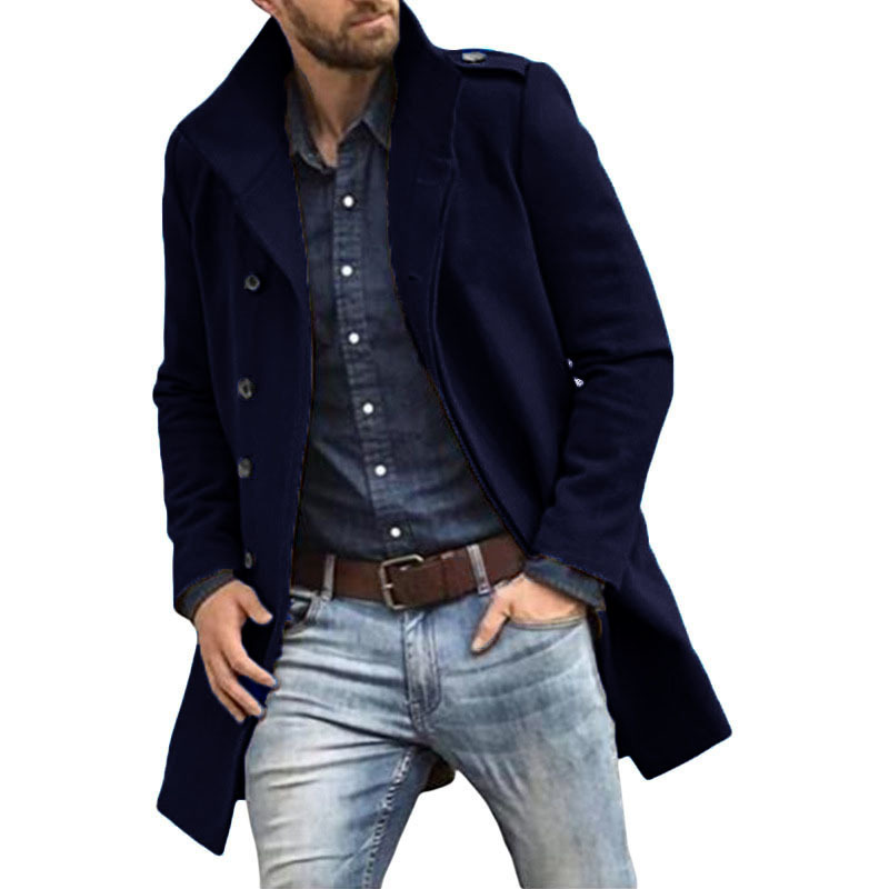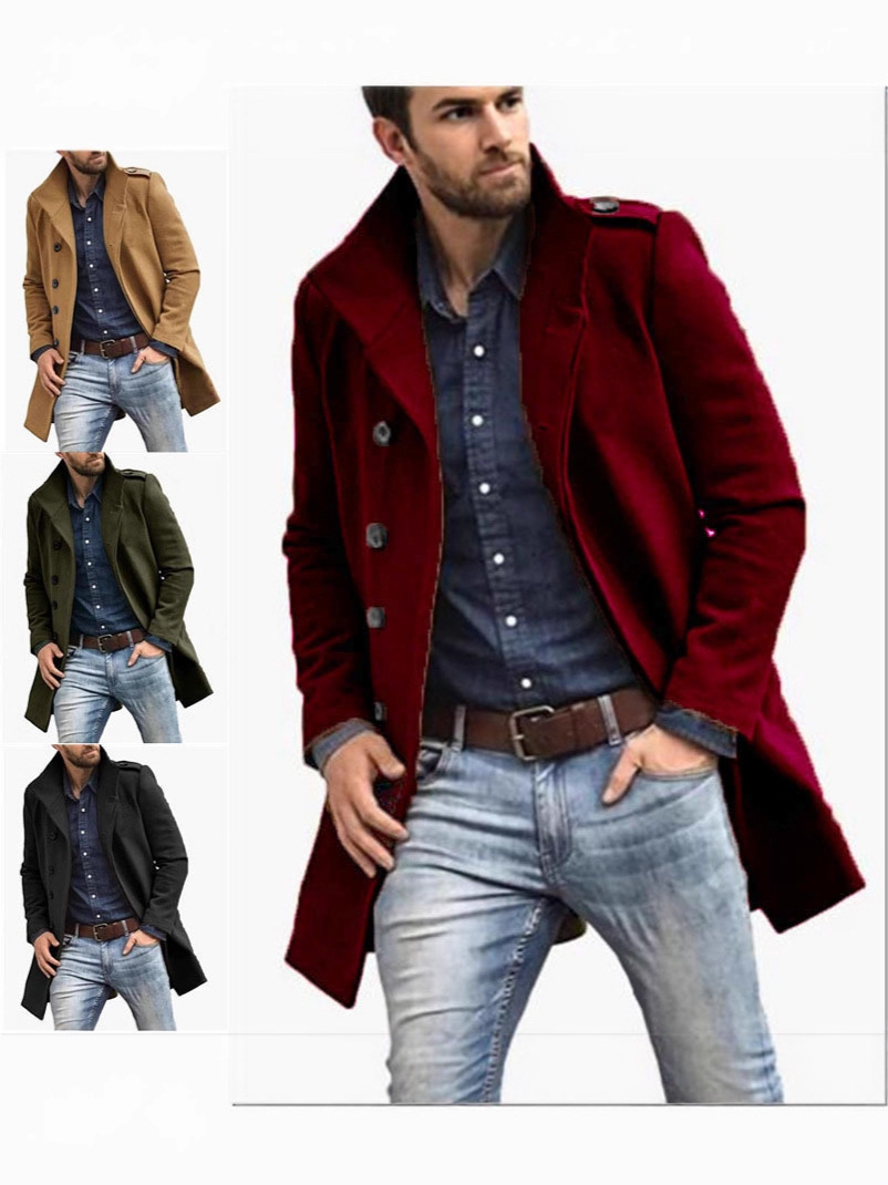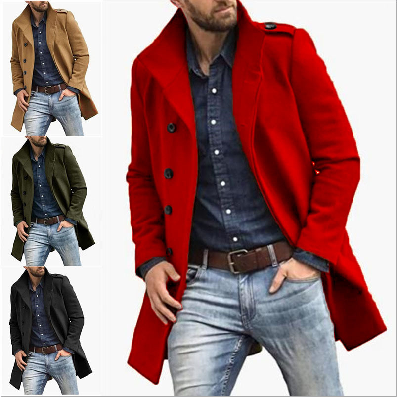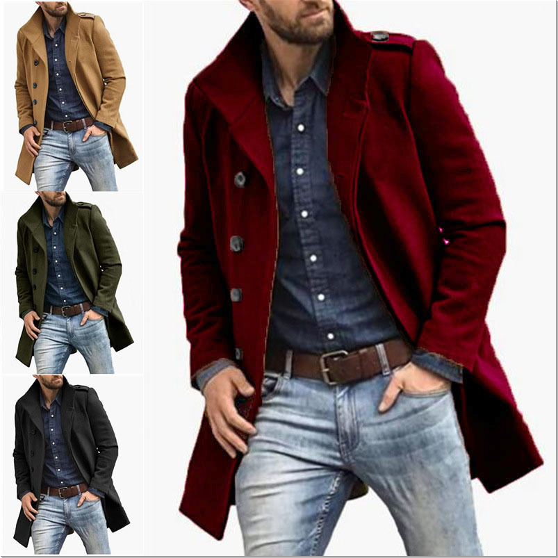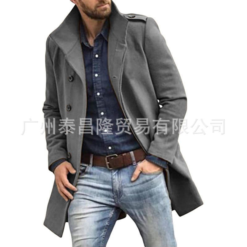 Европейские и американские трансграничные новые мужские осенние и зимние длинные ветровки шерстяные пальто стоячий воротник сплошной цвет куртка мужская куртка