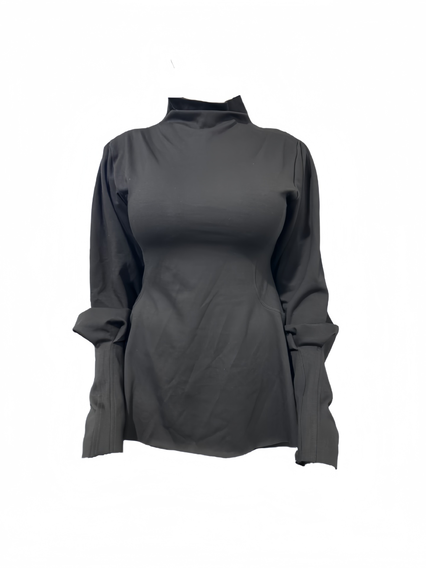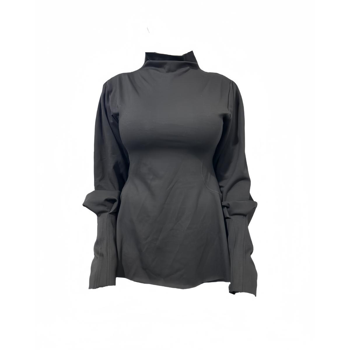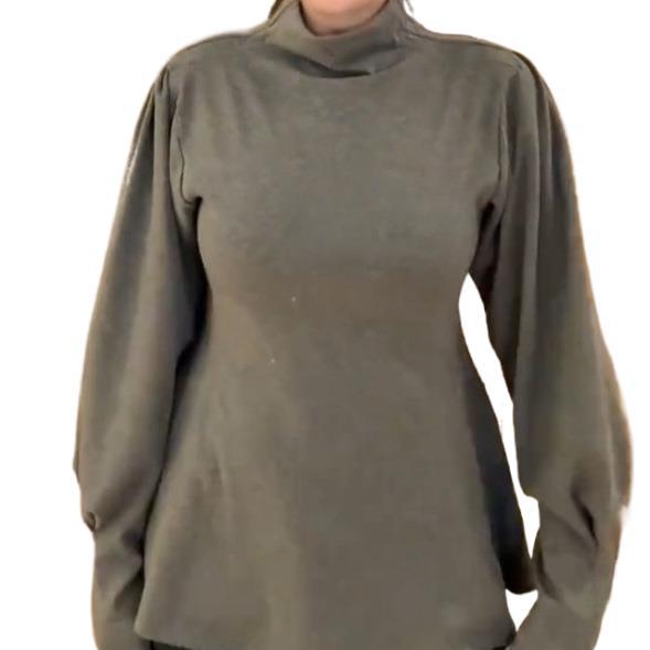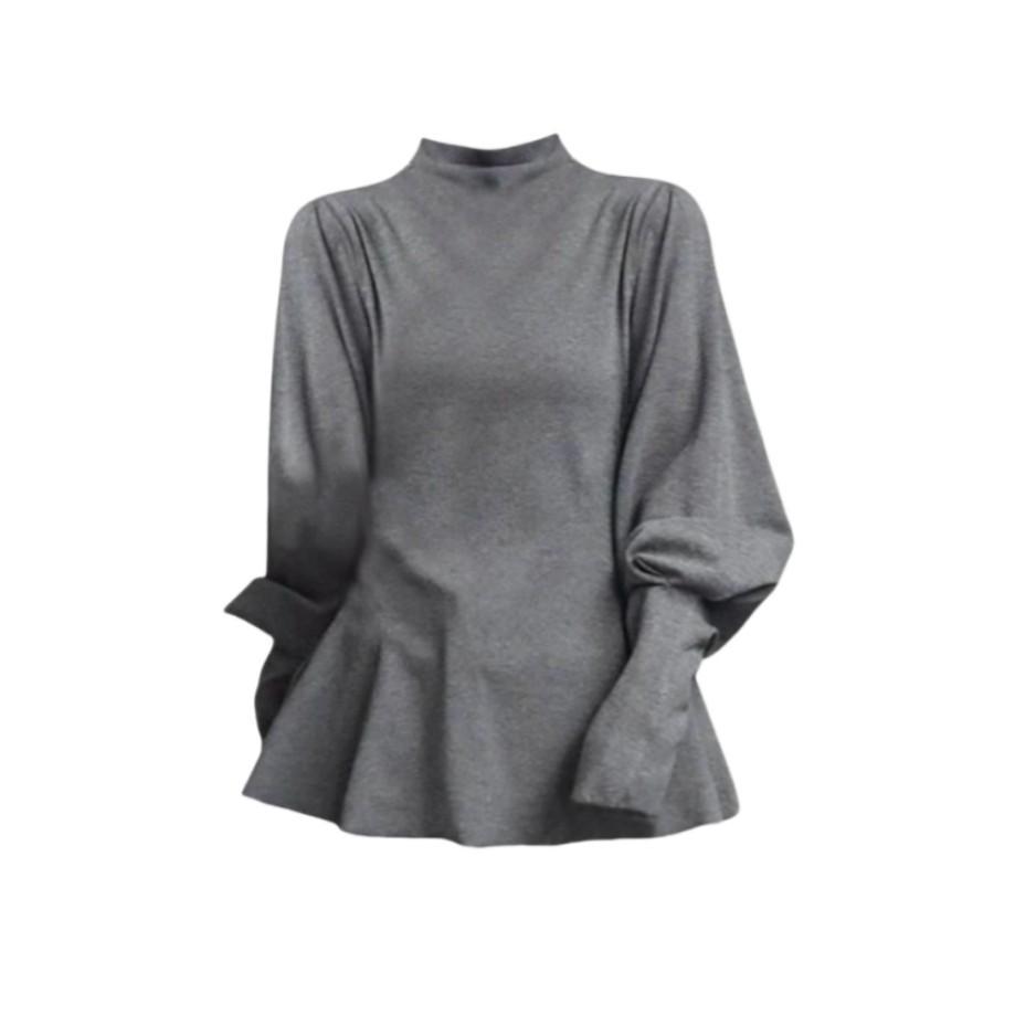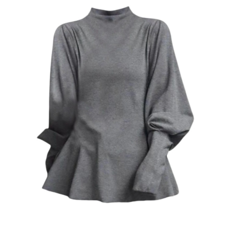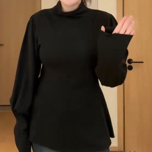 Толстый мм дизайн с талией и полувысоким воротником футболка нижняя рубашка женская осенняя и зимняя тонкая рубашка с рукавами фонаря