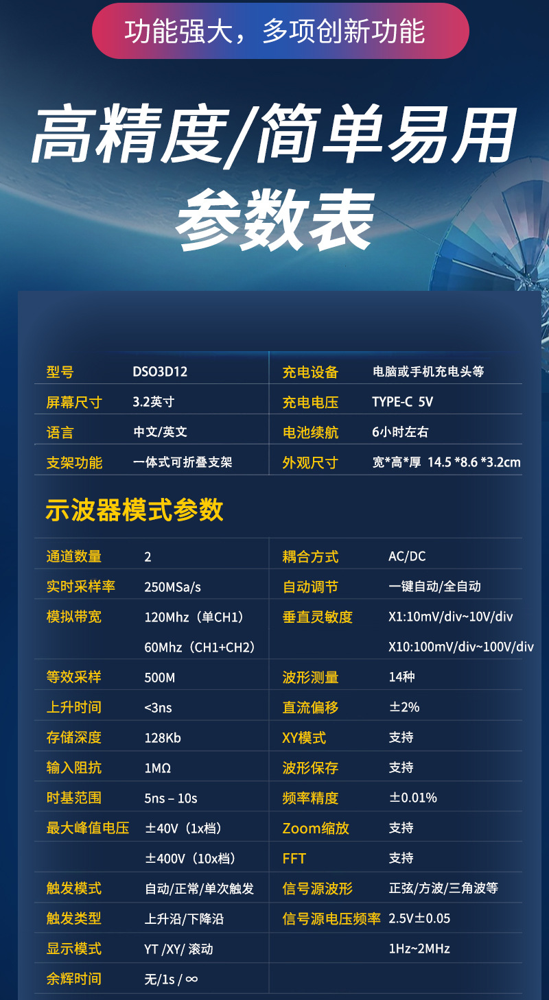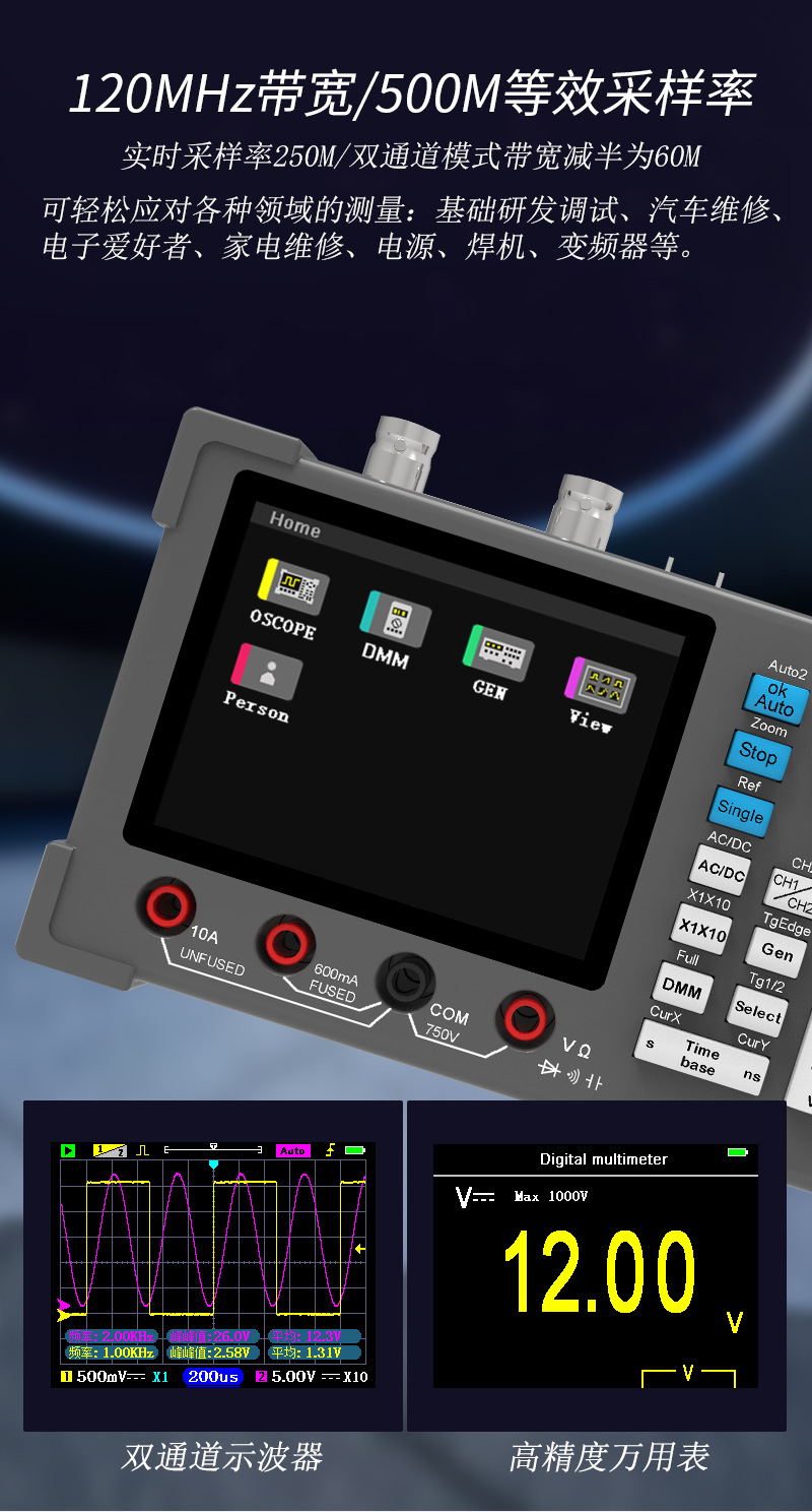 DSO3D12 Высокопроизводительный автоматический двухканальный цифровой осциллограф плюс мультиметр 120M пропускная способность 500M выборки