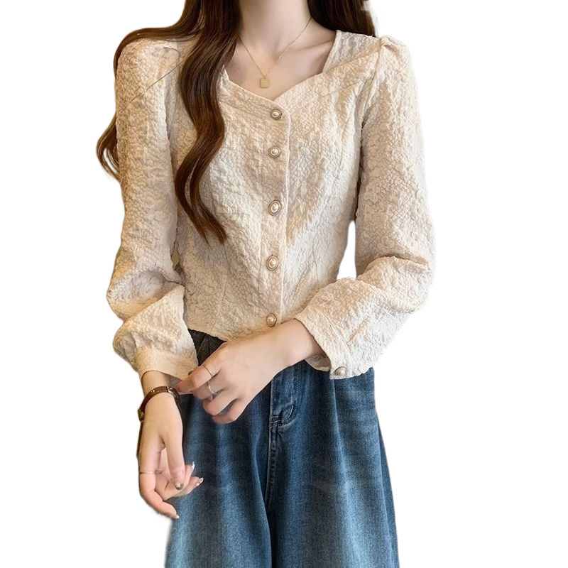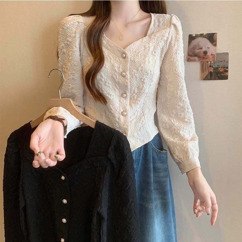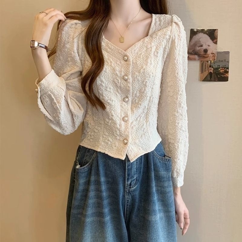 Женская корейская версия большого размера, покрывающий живот, рукава, темпераментная рубашка, женская весна и осень, толстая сестра, худая, дикая короткая топ