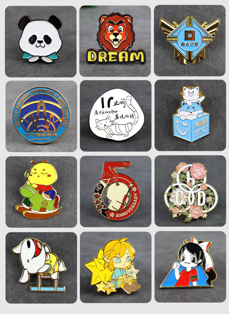 Изготовленные на заказ металлические значки с логотипом, окрашенные эмалью, из эпоксидной смолы, нестандартные школьные значки из цинкового сплава, значки с мультяшными персонажами, фирменные значки
