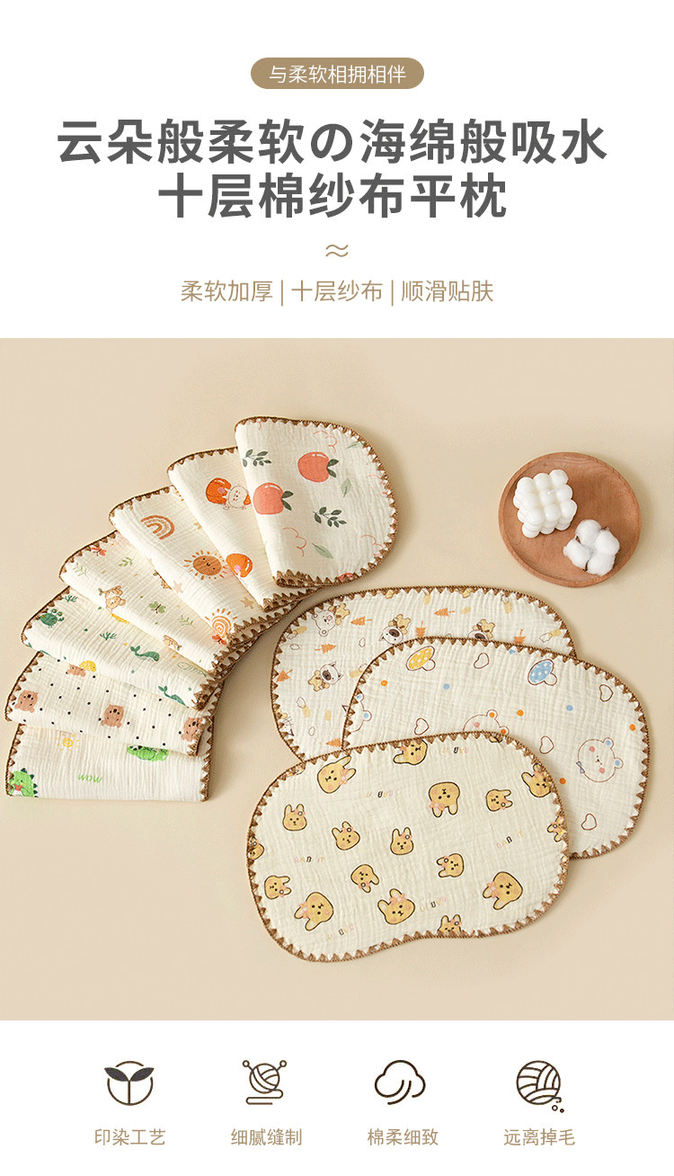 10-слойная марлевая облачная подушка для новорожденных облачная подушка подушка для малышей плоская подушка для ребенка