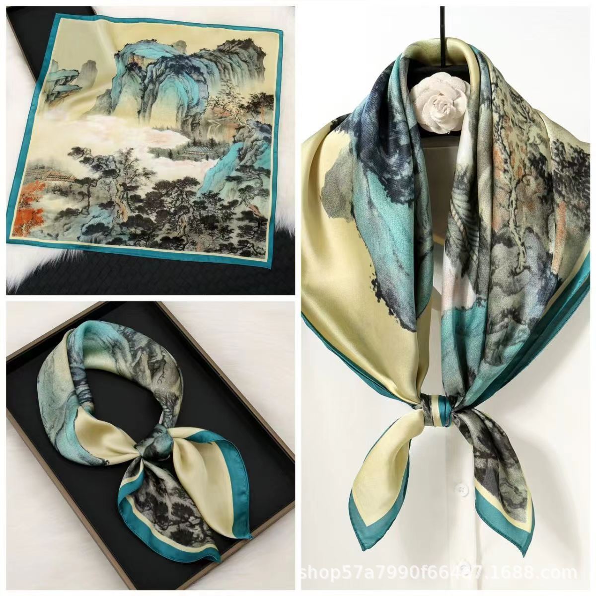 Шелковый шарф женский весенний и осенний высокий класс моды дикий темперамент маленький квадратный шарф ins подарок модный шарф для мамы шелковый шарф