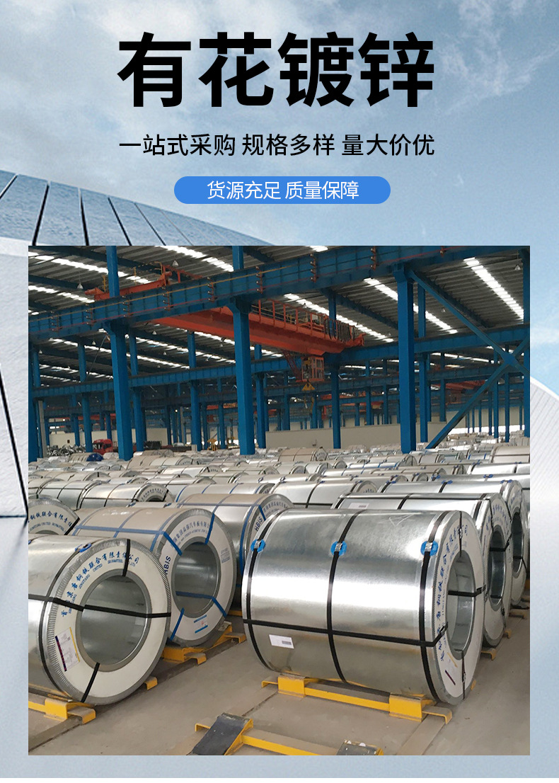Завод-производитель имеет цветущий оцинкованный стальной лист, стальной ремень, подходящий для промышленной строительной техники, с высокой прочностью, оцинкованный рулон оптом.