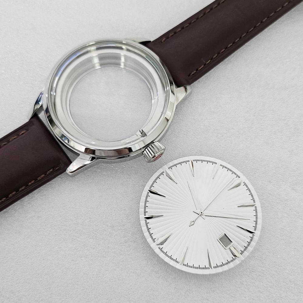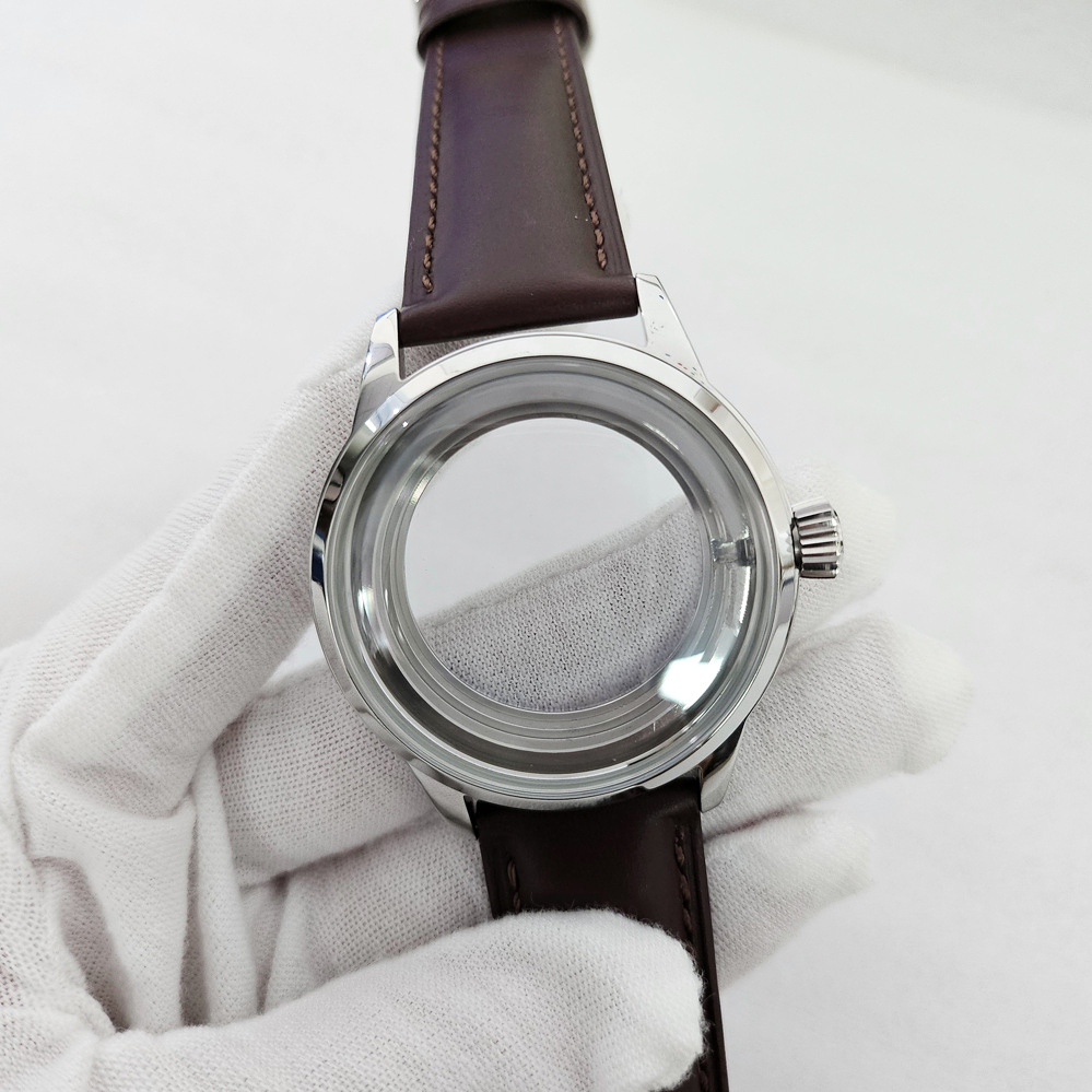 Аксессуары для часов 40MM полированный корпус для кофе коричневый ремень набор минерального стекла подходит для механизма NH35/36