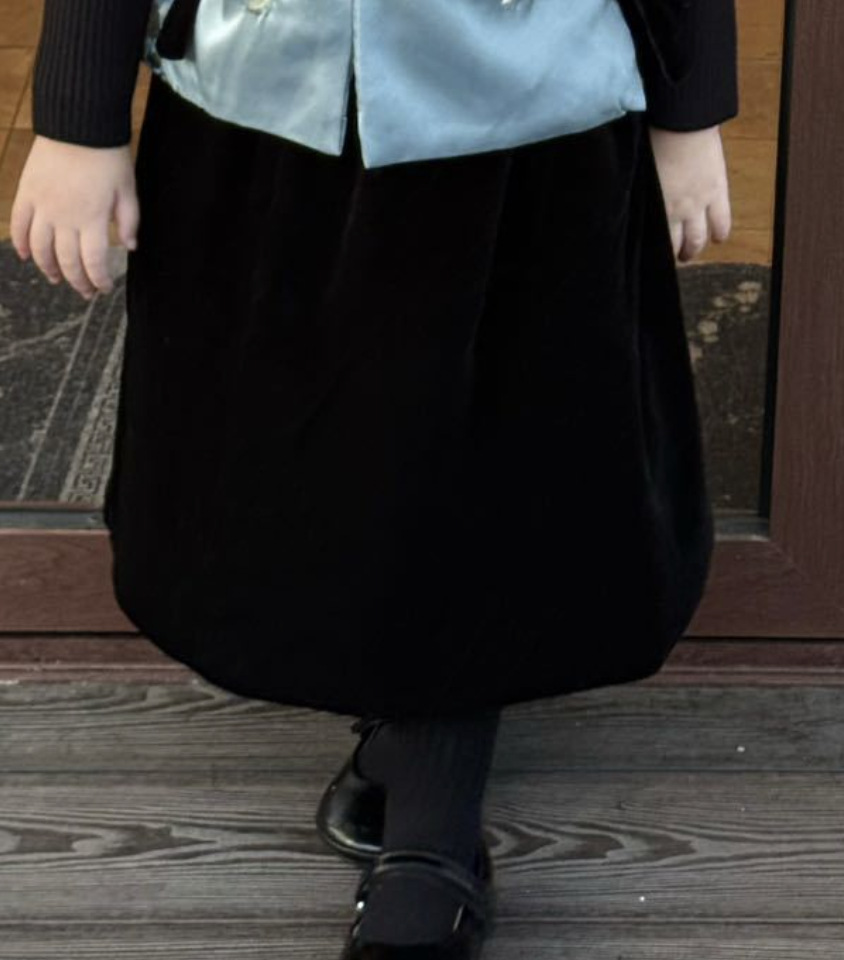 топ красного жилета; Свитер с черным низом (плотный); Черная стеганая бархатная юбка