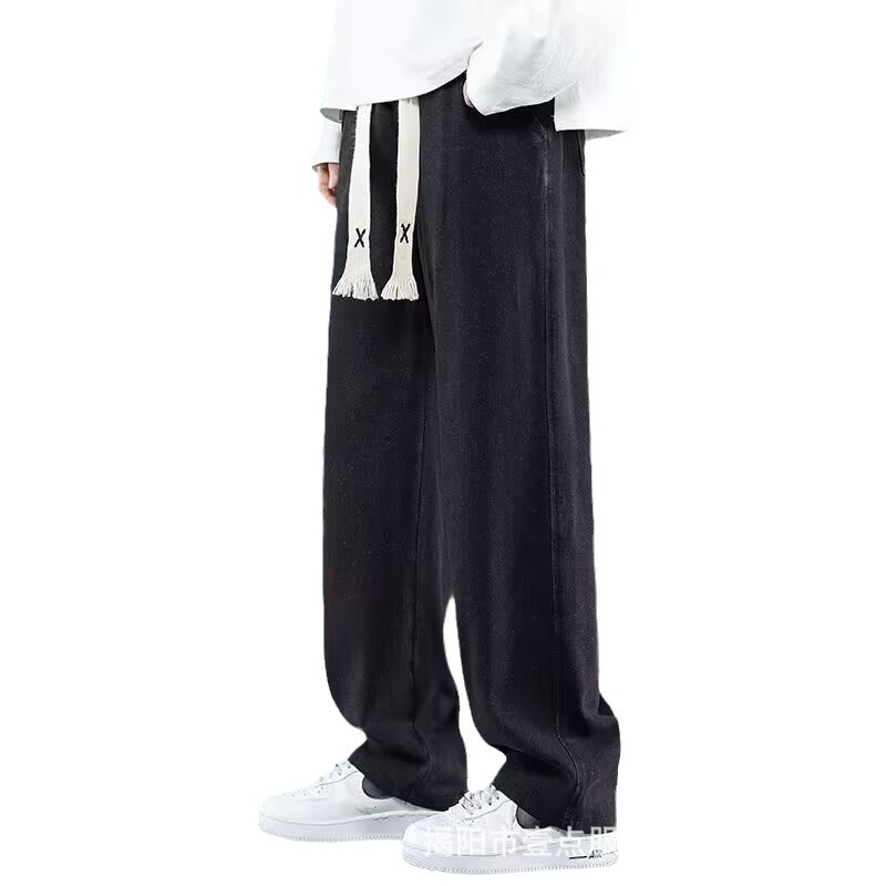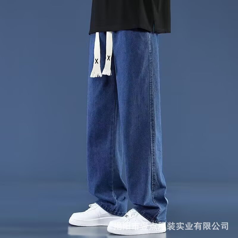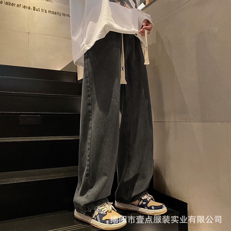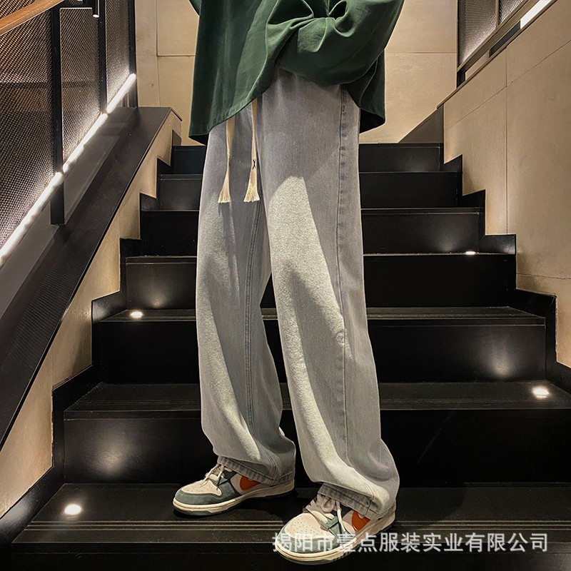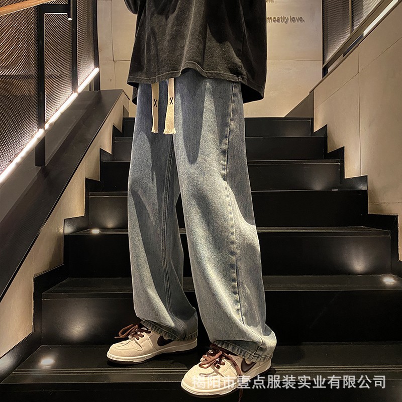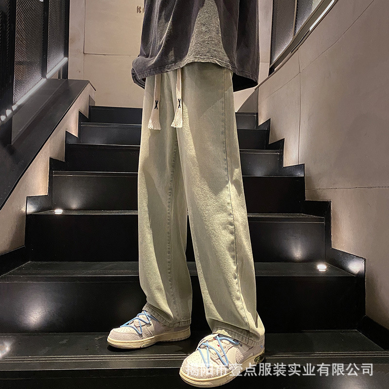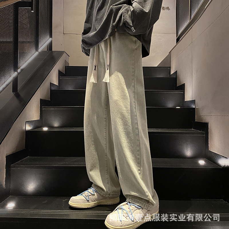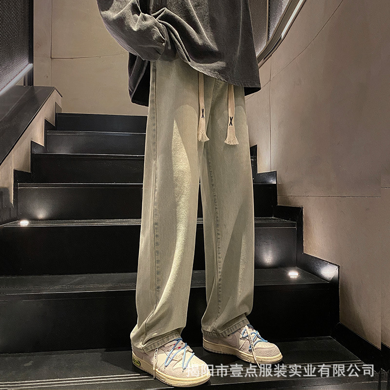 Американский ретро стирает старые эластичный, желтая грязь, широкие джинсы, мужские свободные прямые приливные брюки большого размера