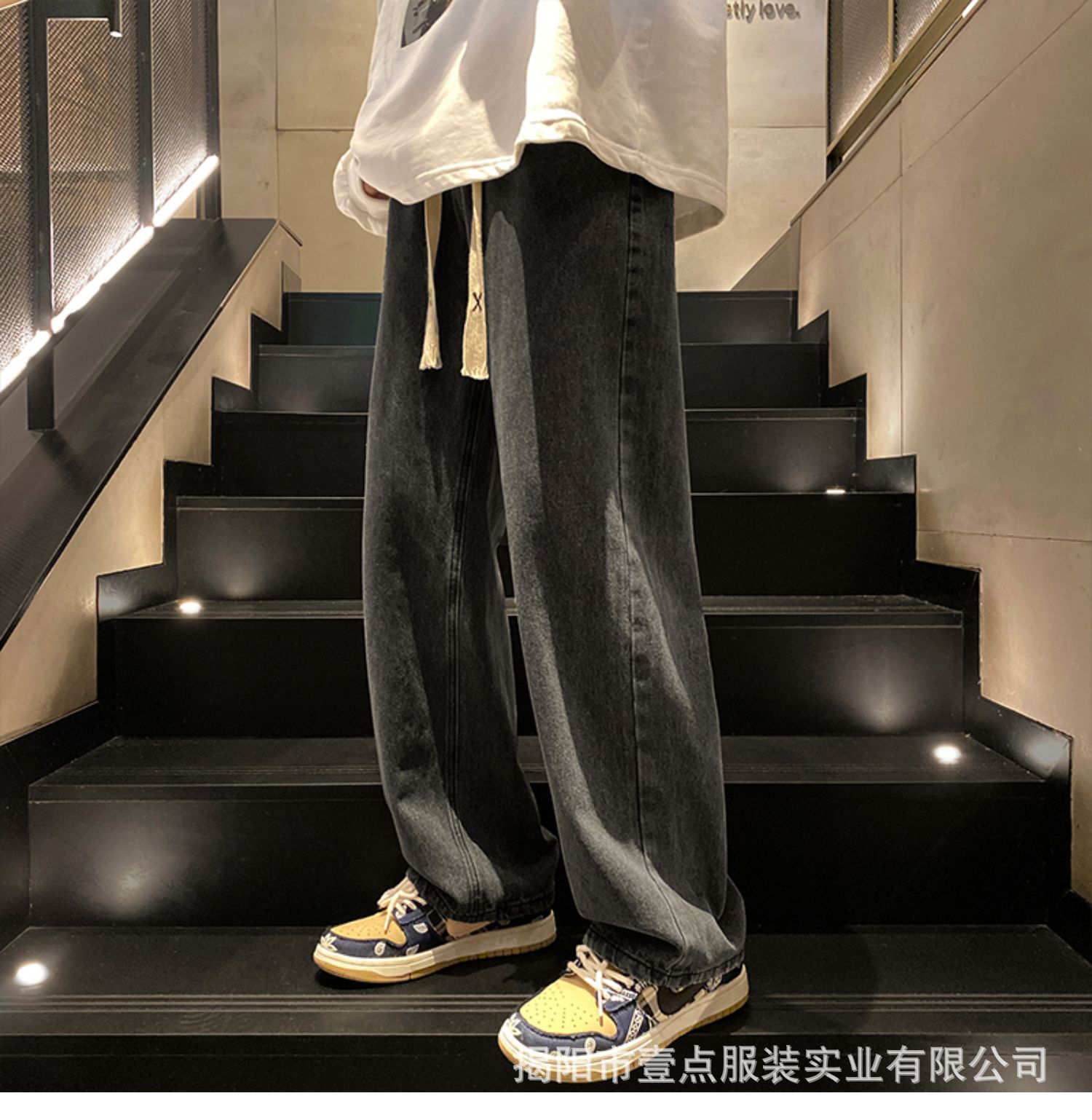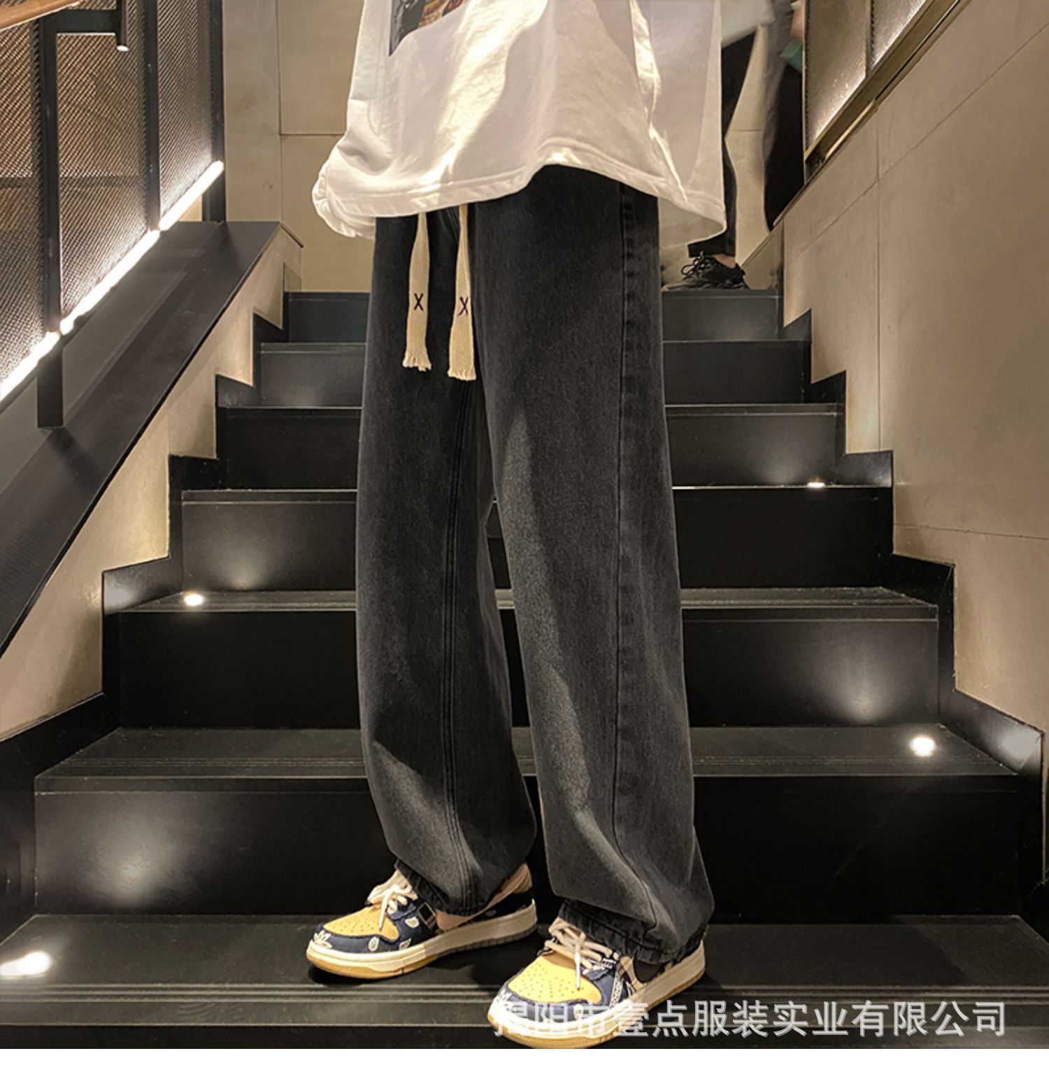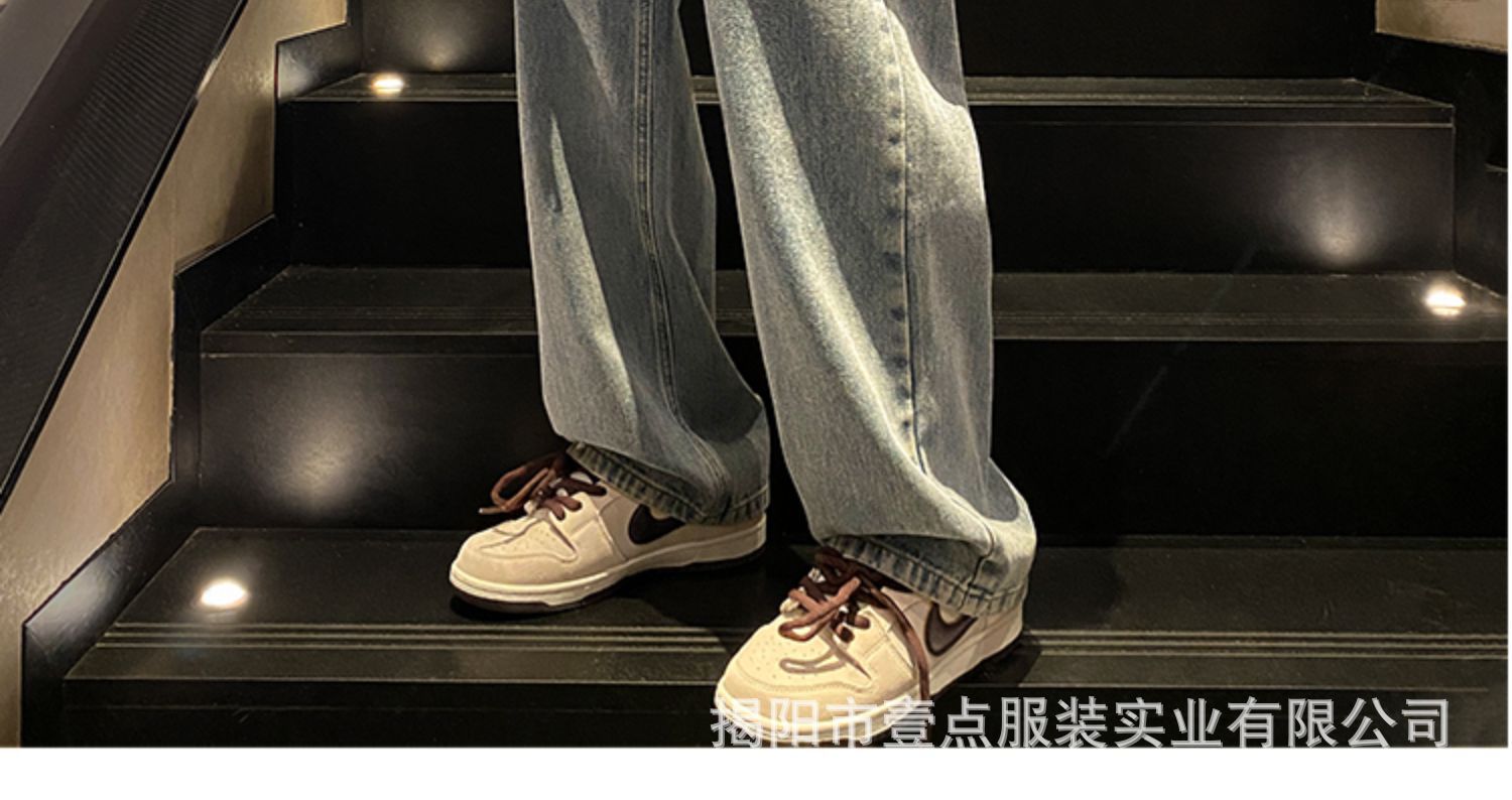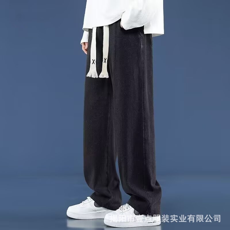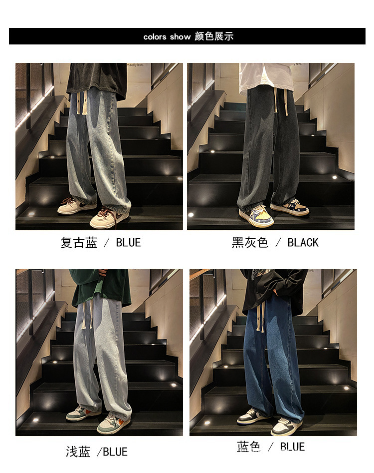 Американский ретро стирает старые эластичный, желтая грязь, широкие джинсы, мужские свободные прямые приливные брюки большого размера