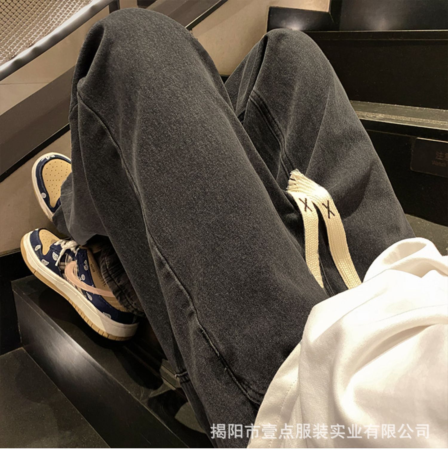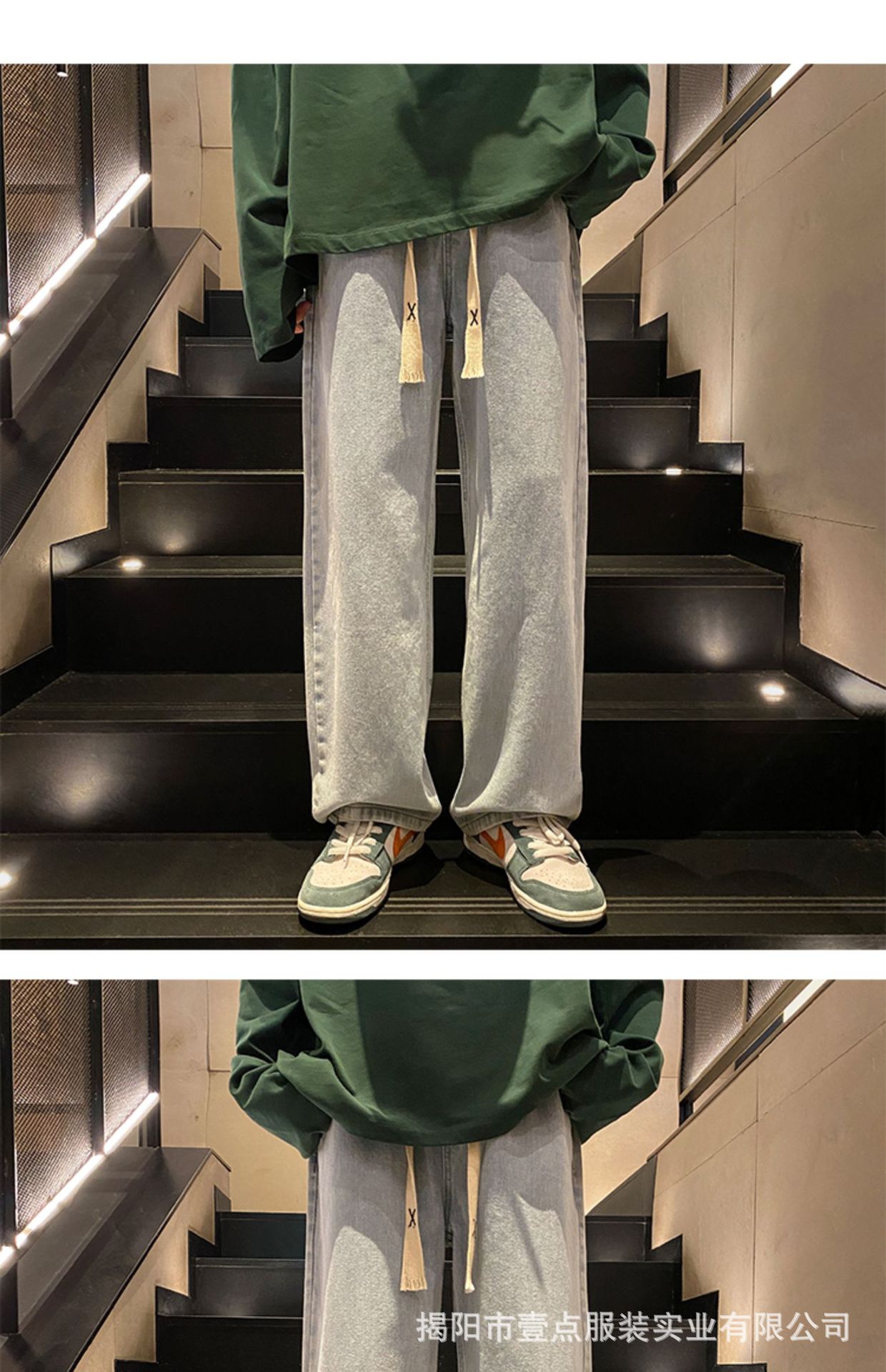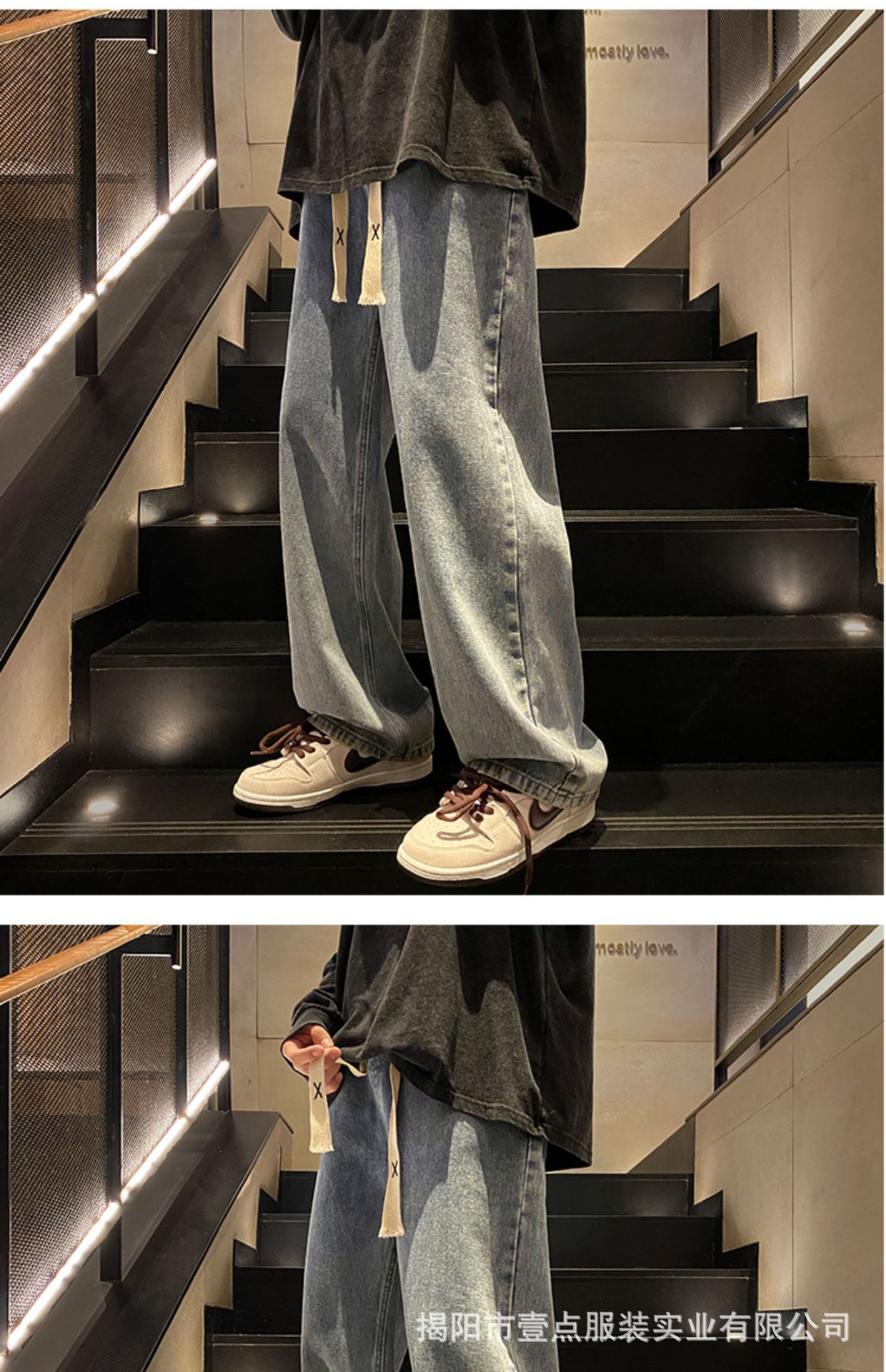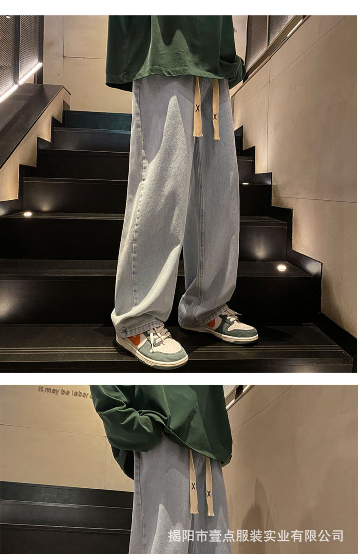 Американский ретро стирает старые эластичный, желтая грязь, широкие джинсы, мужские свободные прямые приливные брюки большого размера