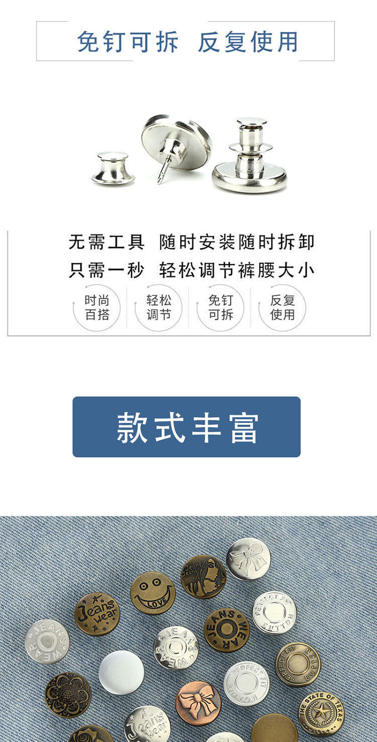 Пуговицы для удержания талии без шипов Съемные пуговицы Универсальный пуговицы без шитья джинсы для регулировки талии