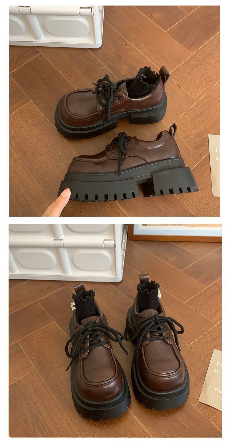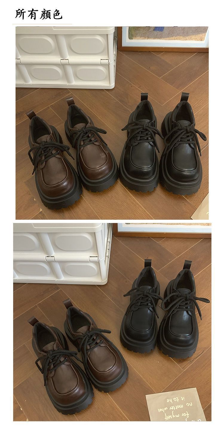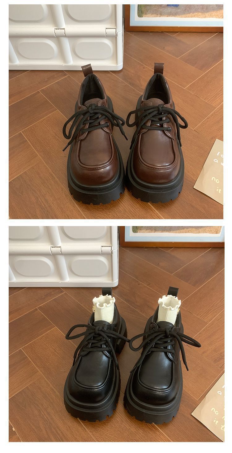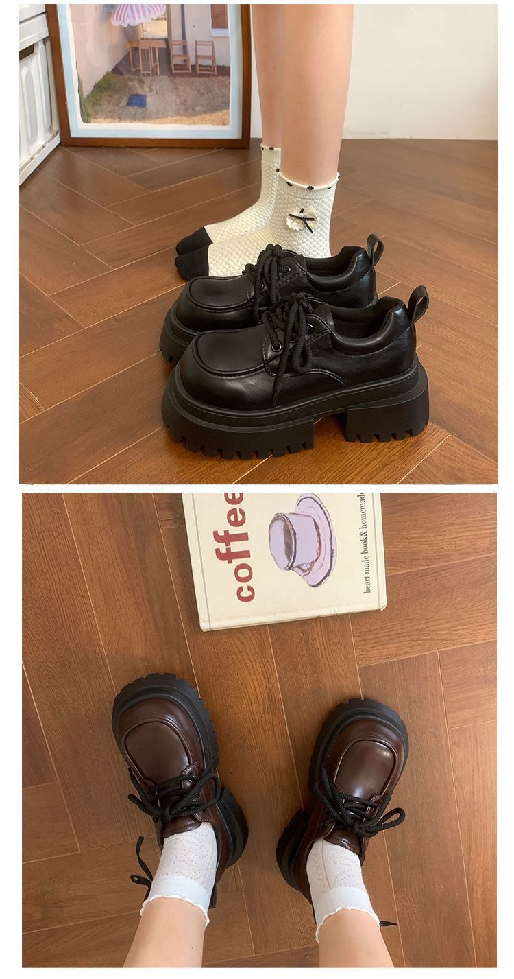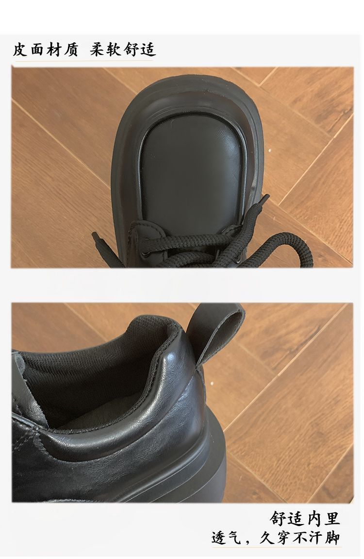 Женская толстая подошва увеличена, обувь Lefu 2024 новые осенние и зимние британские кожаные туфли женские черные туфли Mary Jen