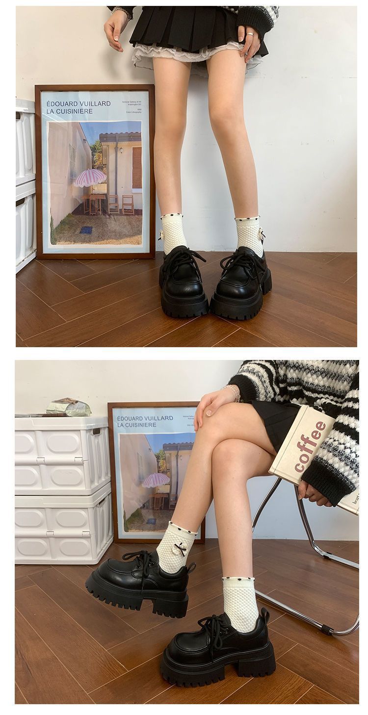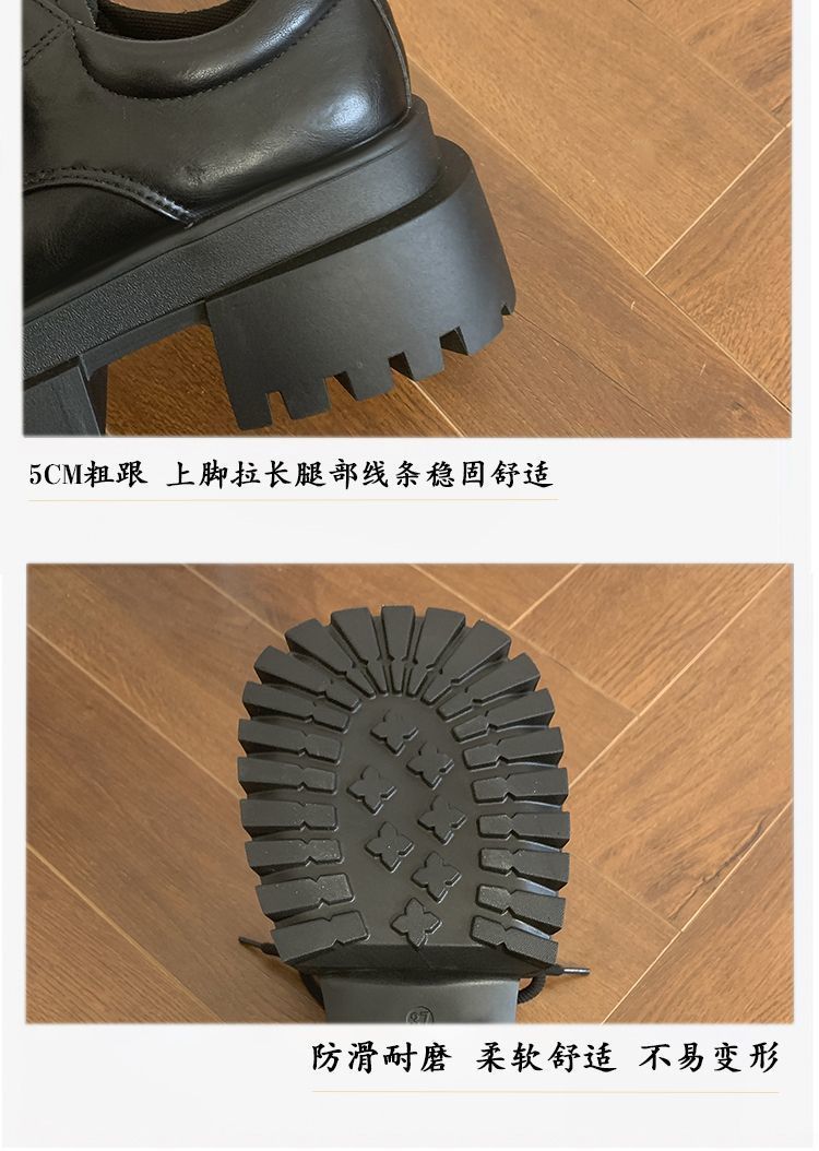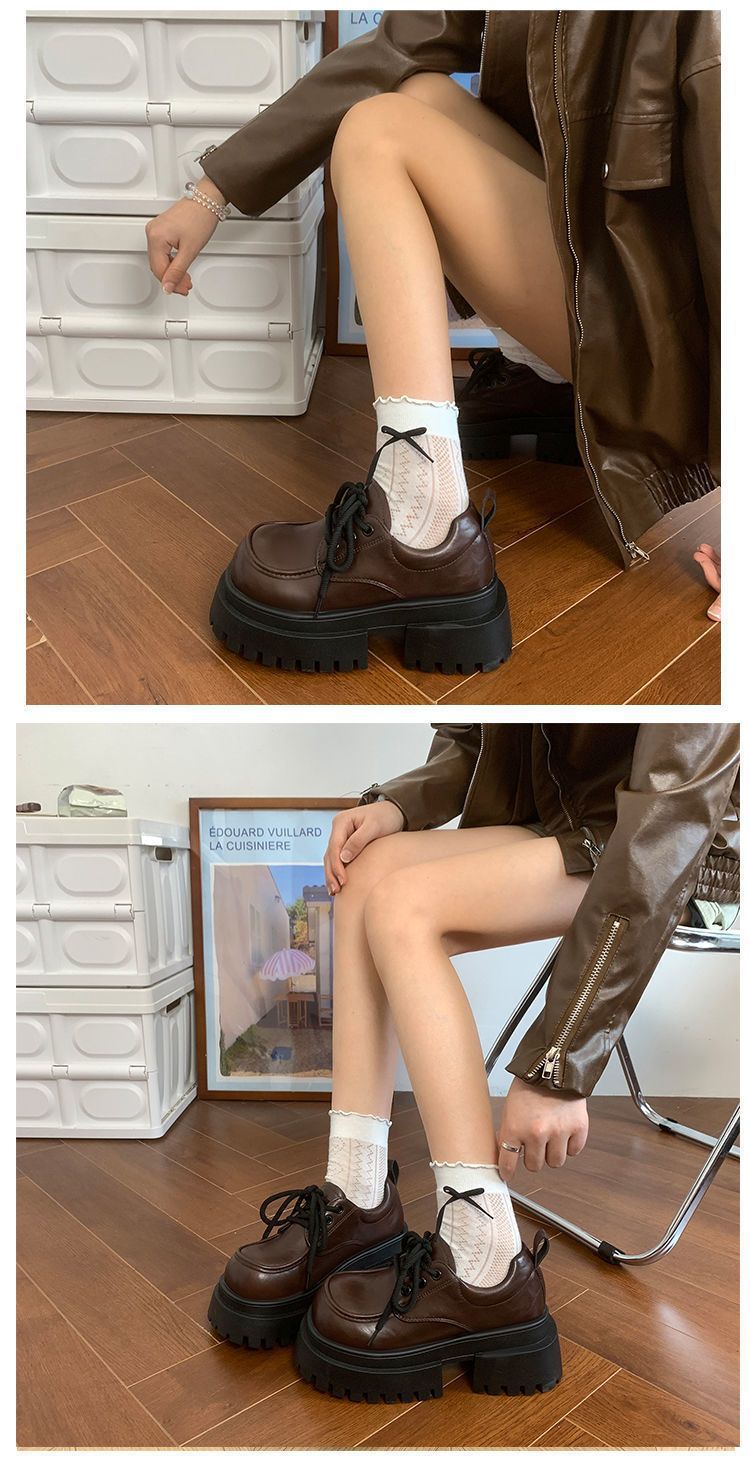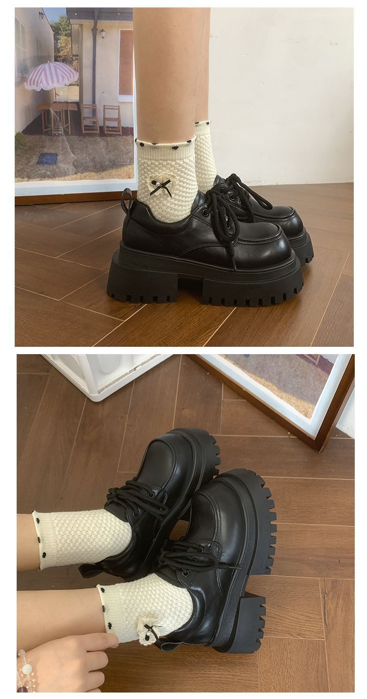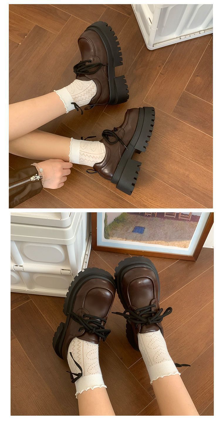Женская толстая подошва увеличена, обувь Lefu 2024 новые осенние и зимние британские кожаные туфли женские черные туфли Mary Jen